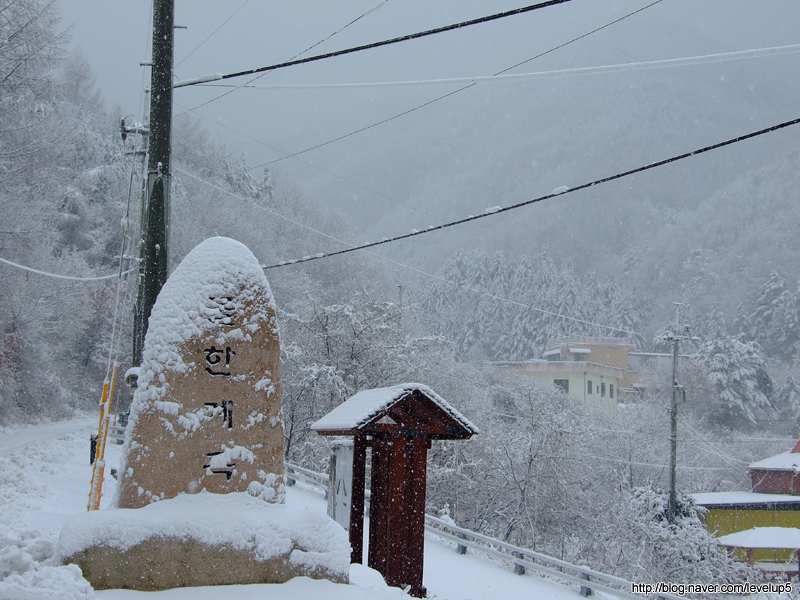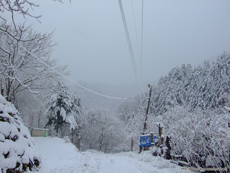 많은 눈이 내린 상황에서 다행히 도로는 어느정도 제설이 되었지만, 주차장으로 향하는 내리막길은 제설이 안되어, 뒤풀이할 식당에 차를 대놓고 산행을 시작했다.