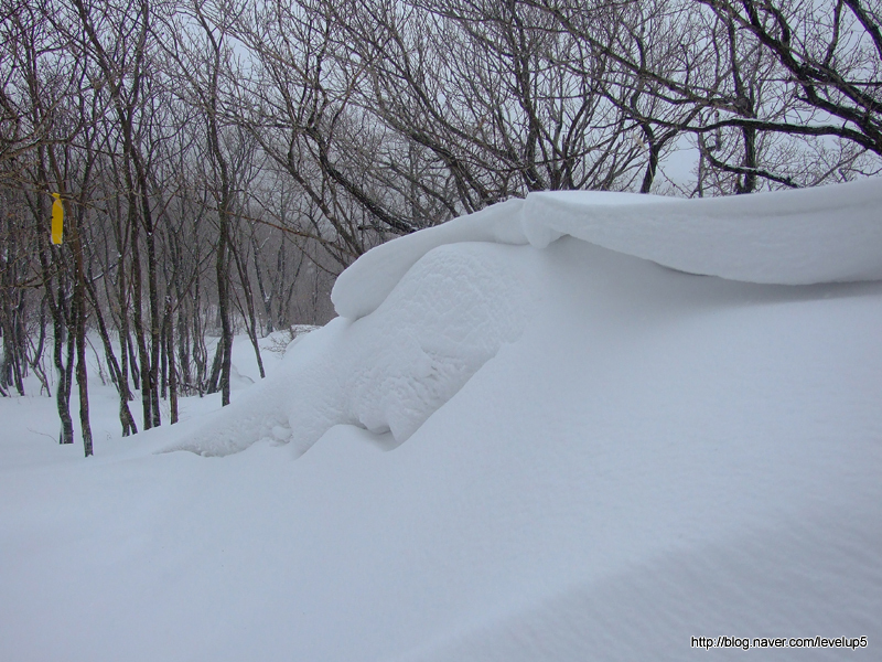 능선에는 구간별로 바람이 날라다 준 눈들이 더 많이 쌓여 있다.