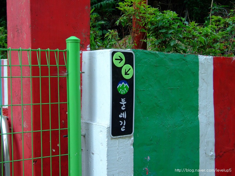 방향 표시목 - 횡단보도, 공원등에서 어느방향으로 둘레길이 진행되는 지 알려준다. 아! 가끔 저 동그란 화살표를 뜯어간(?) 것도 있으니 주의를 요한다.