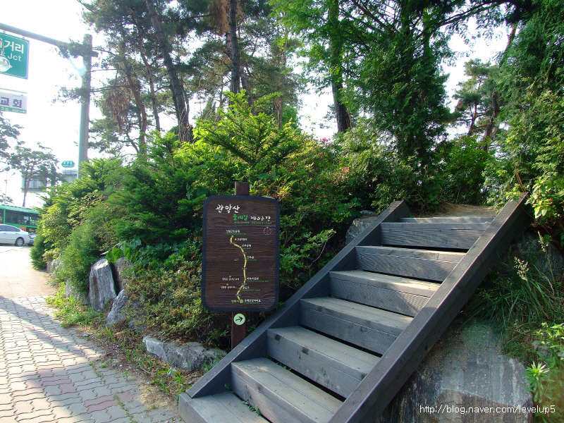 바로 배드민턴장이 나오는 데 좌측 급경사 계단으로 오르면 된다.