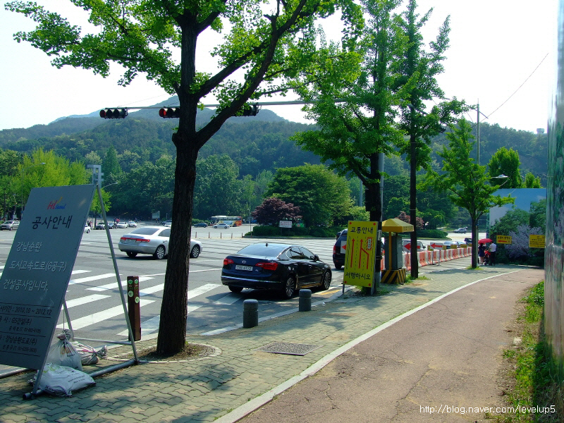 철조망문을 지나 좌측으로 진행방향 표시가 되어 있는 데, 잘못된 것이므로 꼭! 우측(서울대정문) 방향으로 진행한다.