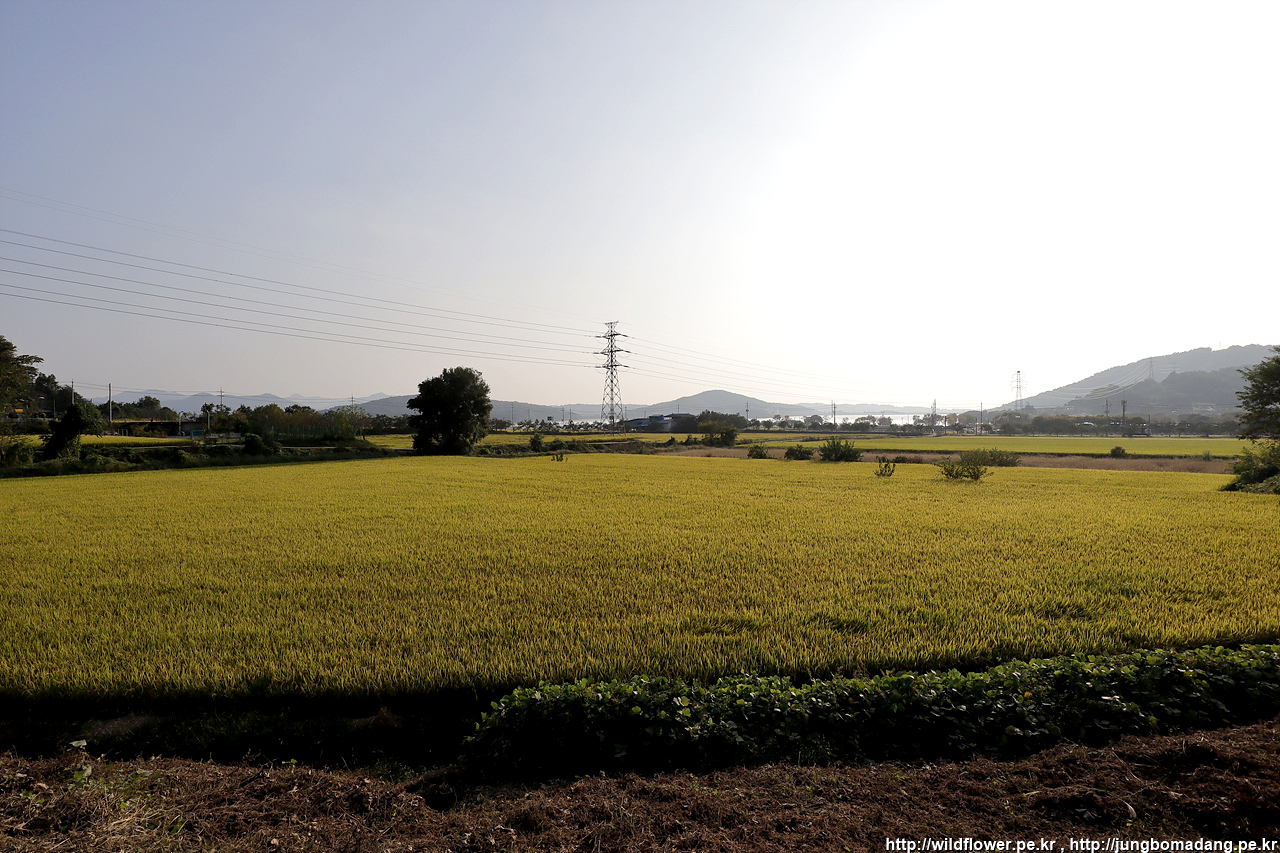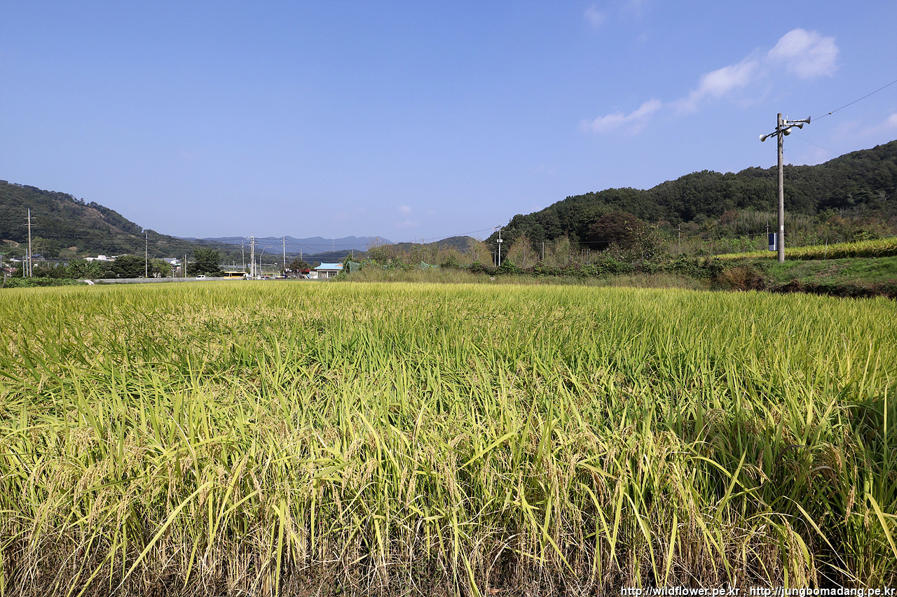 기도에 방해되지 않게 조용히 둘러 보다 옆문으로 나와서 황금들판을 바라보며 천호산으로 오르기 시작합니다.
