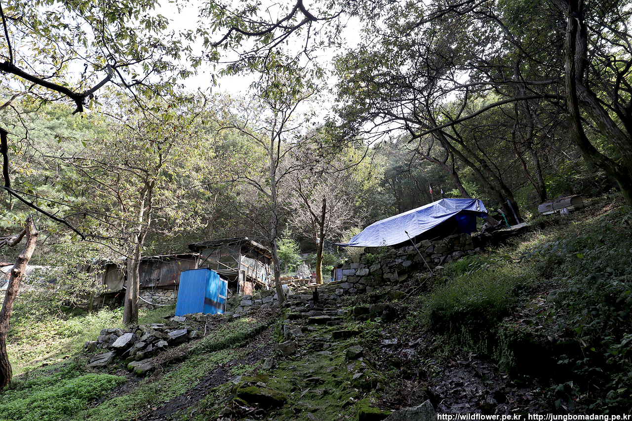 길을 잘못 들었습니다. ㅜ 검둥개가 엄청 짖어댑니다. 분위기 보니 넘어 가야할 것 같은데. 기도도량에 주인이 나오시더니 등산로가 이상하게 되어 있어 종종 헤깔리는 경우가 있다 하셔서 되돌아 가려 했는 데, 다행히 배려해 주셔서 올라서서 좌측편으로 통과해서 가게끔 등산로를 알려 주시네요. 멍뭉이가 지나가는 내 옆에서 킁 킁. 짖는 소리는 사납지만 그리 사나워 보이진 않았습니다.