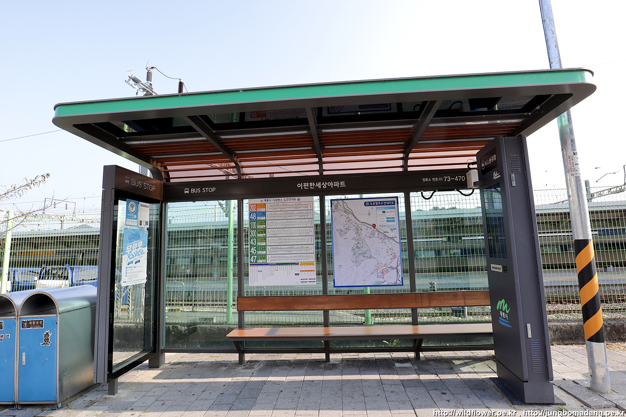 계룡역앞 이편한세상아파트 정류장에서 202번 버스를 기다립니다.