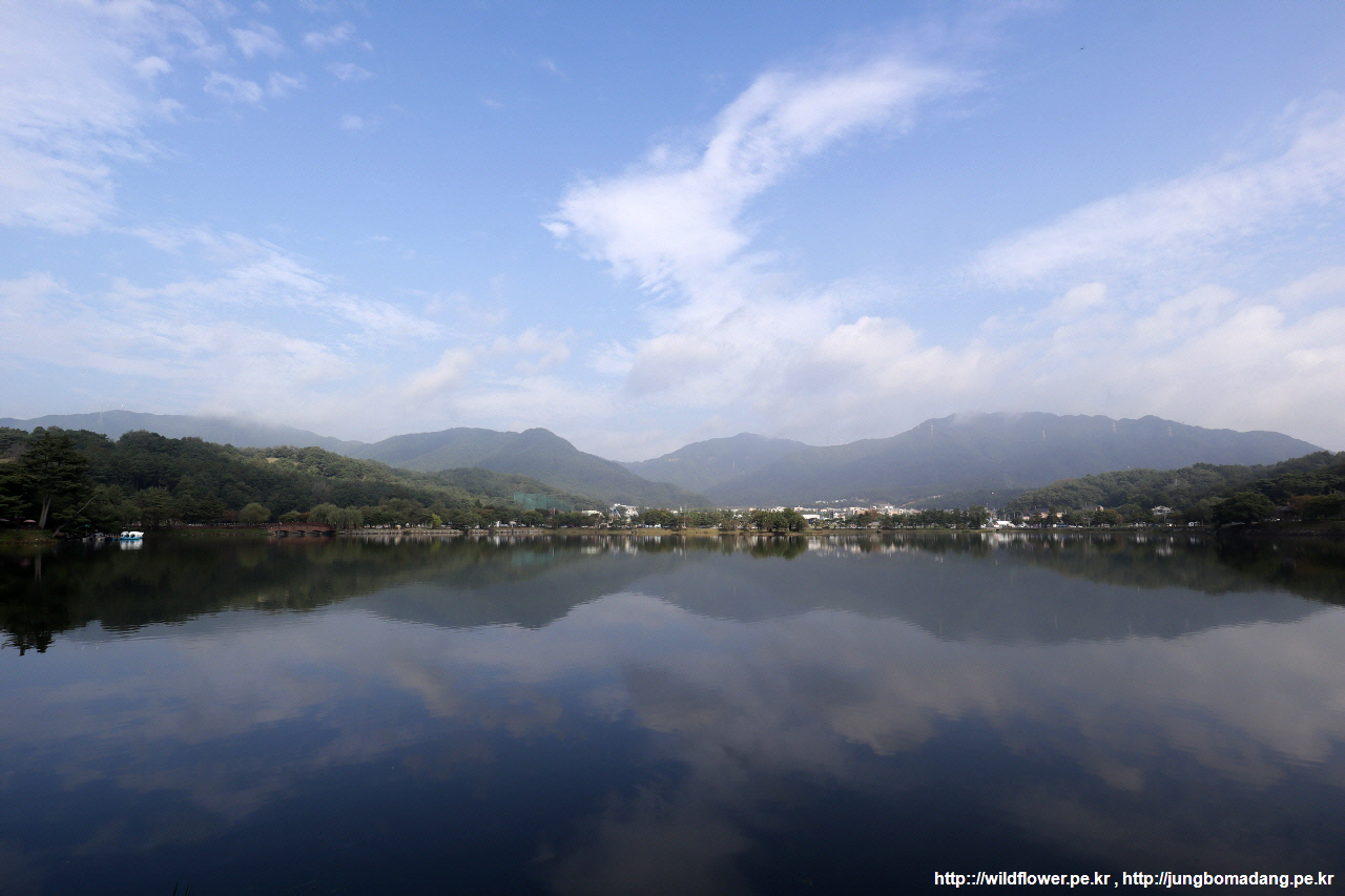 의림지 뒷편으로 우측으로 제천의 진산 용두산, 그리고 좌측으로 백곡산이 보입니다.