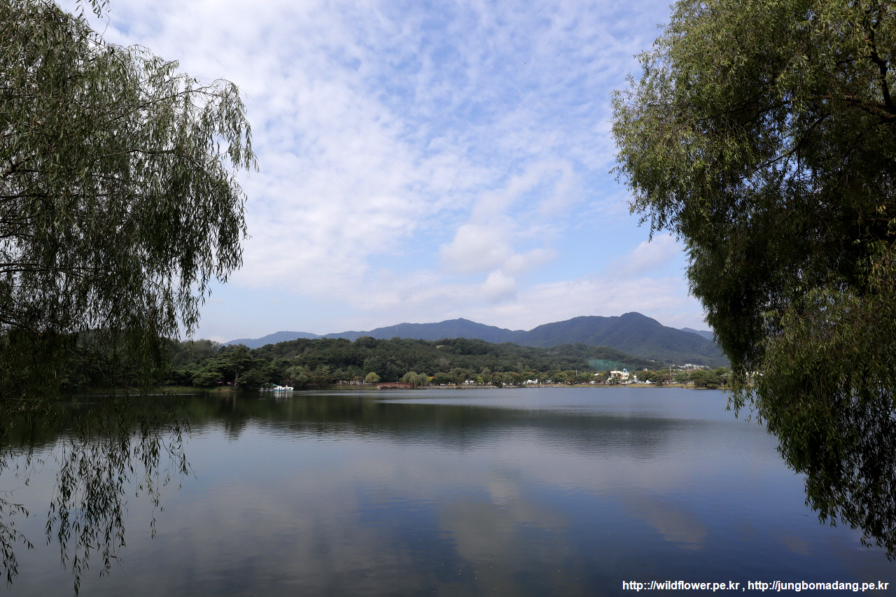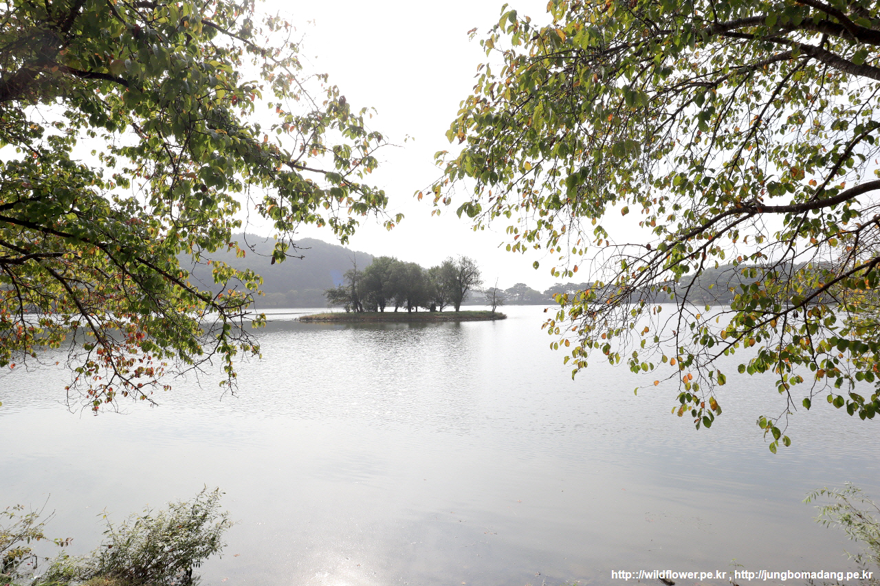 호수 둘레로 벚나무도 심어 있습니다. 벚나무 단풍 뒤로 순주섬