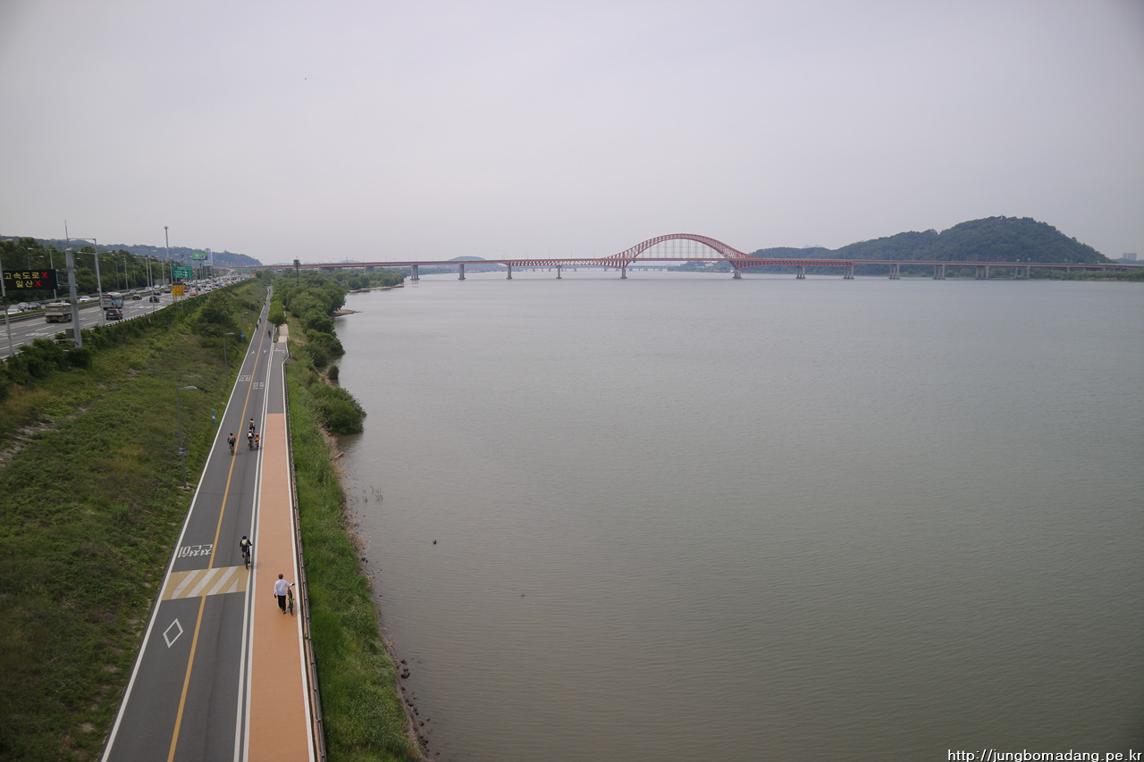 한강공원 자전거도로와 방화대교 그 뒤로 행주산성이 보입니다.