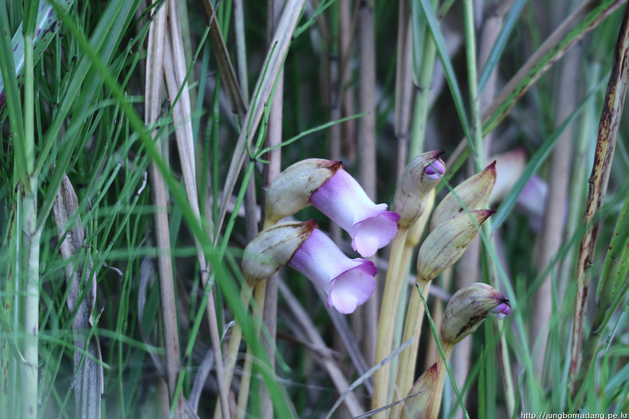 야고 - 그리 어렵지 않게 보물을 찾았습니다. ㅜ. 열당과라는 얼핏 듣기에 생소한 집안의 꽃으로 기생식물입니다. 어디에 기생을 하냐면 억새에 기생을 합니다. 원래 제주에서 피던 꽃인데 어찌 하다보니 하늘공원까지 넘어오고 덕분에 신비스런 이 꽃을 어렵지 않게 영접을 하게 되었습니다. 기생식물의 본분을 다하려는 듯 주로 양지바른 곳 보다는 억새의 그늘 아래 자리 잡은 모습이 대다수입니다.