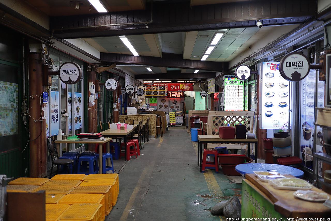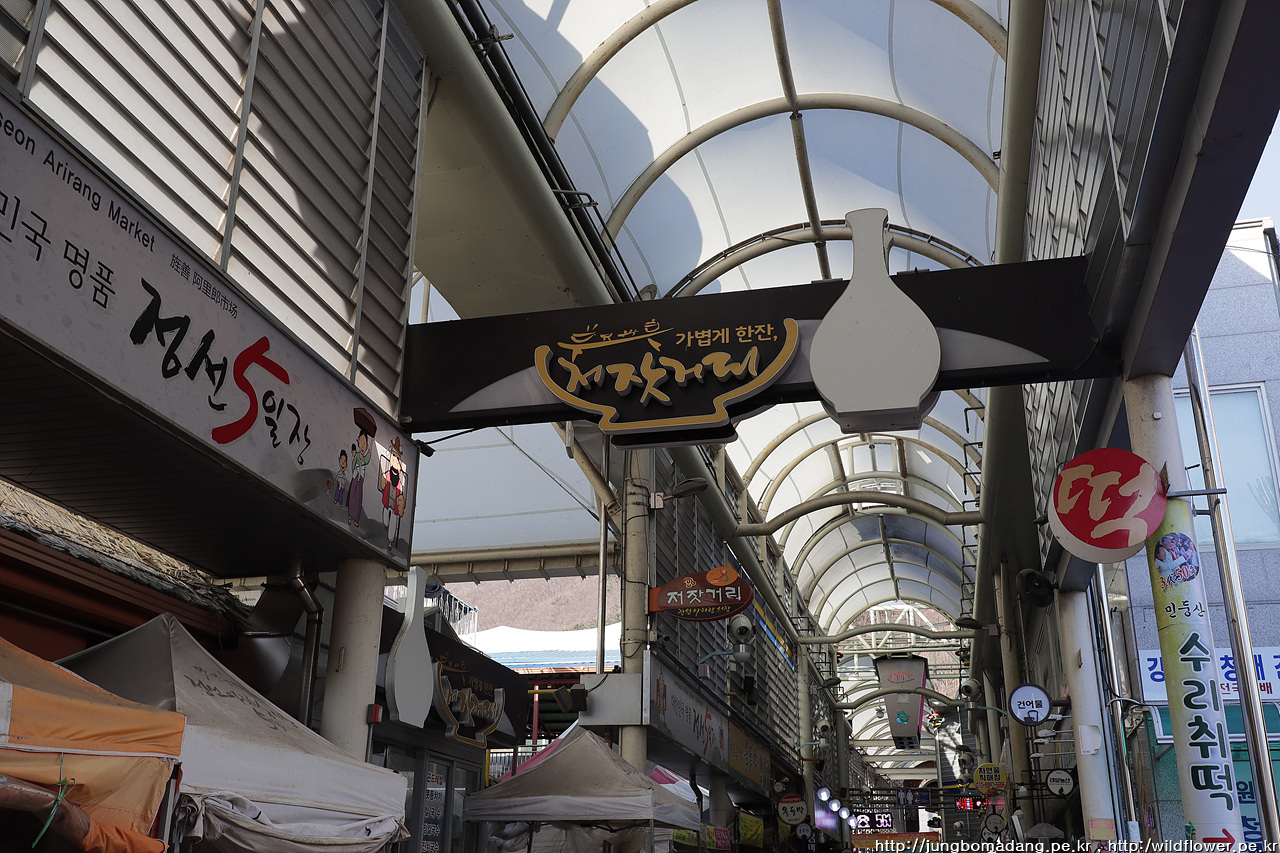 정차중인 택시는 커녕 지나가는 택시도 안보이는 겁니다. 눈치 까고 잽싸게 콜택시 부르니 3분 정도 이내에 도착하고, 기본요금(3300원)에 시내에 도착하네요. 목적지에 가는 버스가 16시경이라 시장에서 간단히(?) 요기를 하기로 합니다. 정선오일장은 2일 7일로 오늘은 19일이니 문 연 가게가 많지는 않습니다.