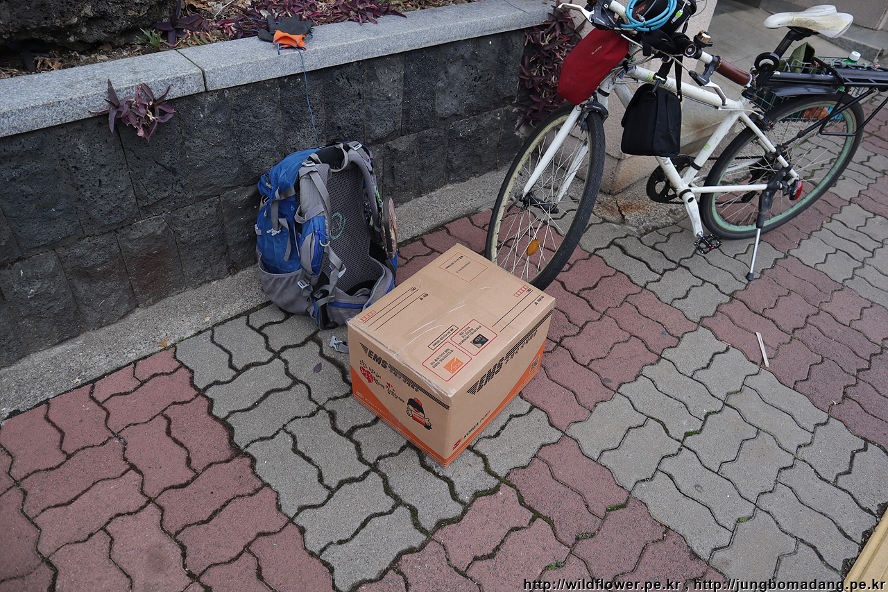 위미리를 지나면서 오늘부터 필요 없어진 텐트, 침낭, 매트를 부침니다.