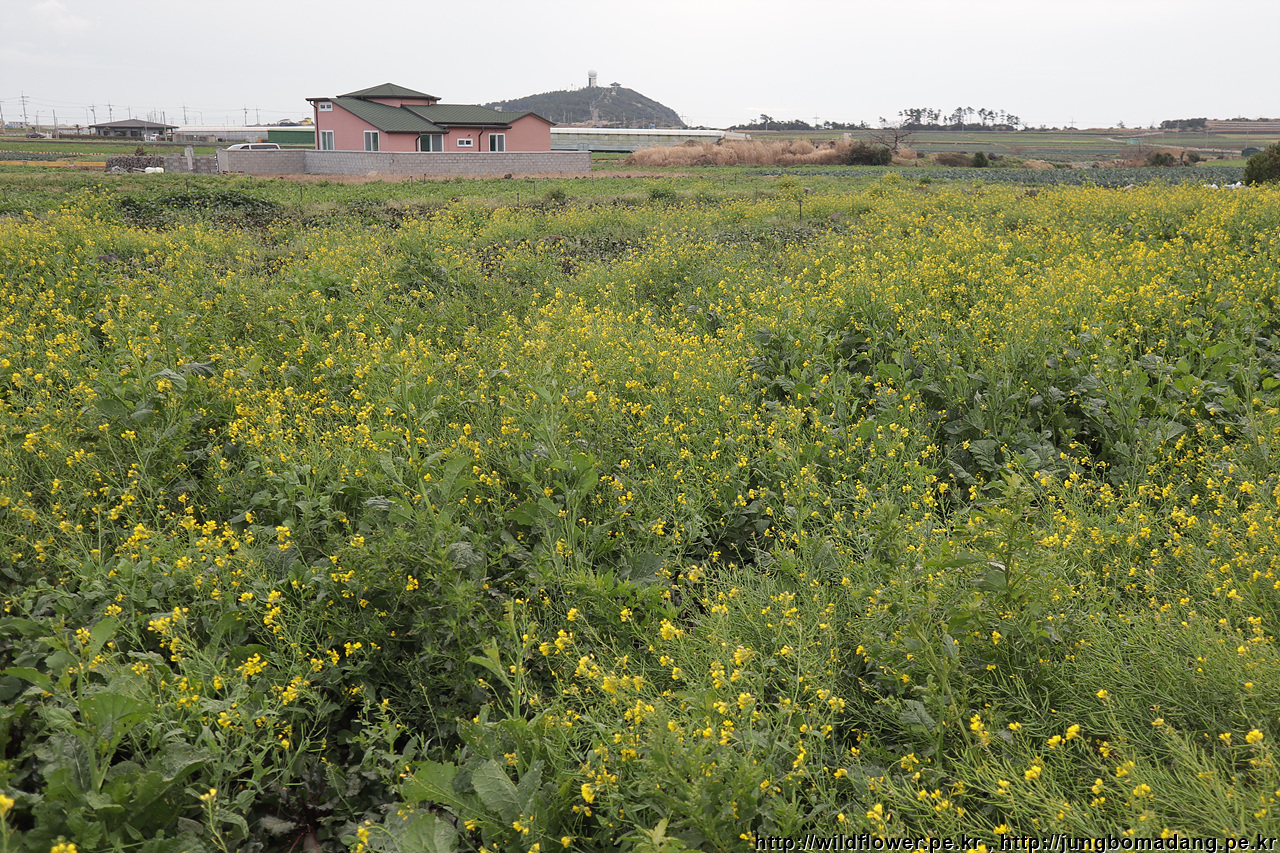 송악산을 지나고 있는 데, 아직 덜핀 유채꽃과 함께 담아 봅니다.