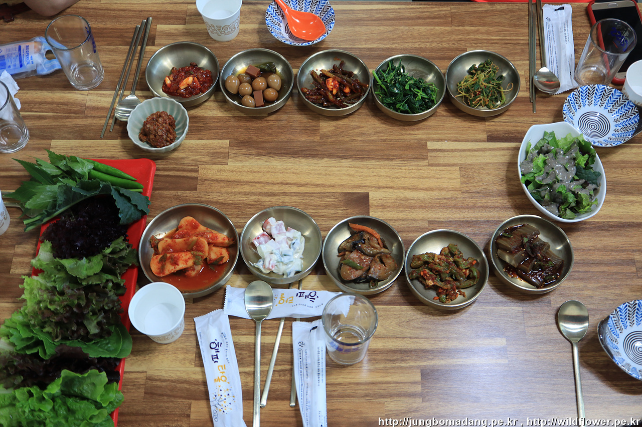 근처 단양군 대강면 소재지에 홍연이라는 한식집에서 뒷풀이를 합니다. 한우불고기쌈밥 기본 차림입니다.