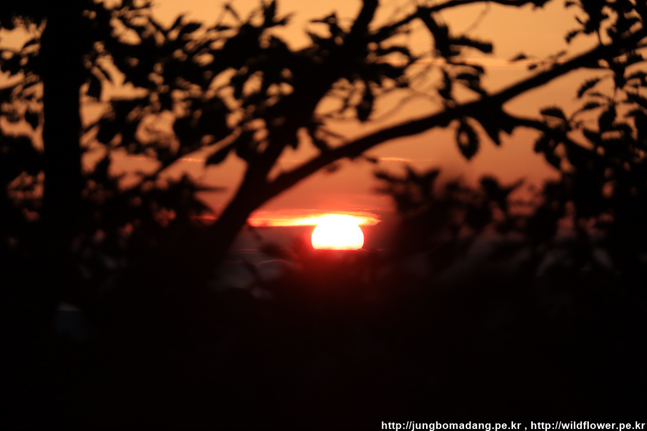 5시 31분 - 드디어 나뭇 가지 사이로 일출을 맞이합니다.
