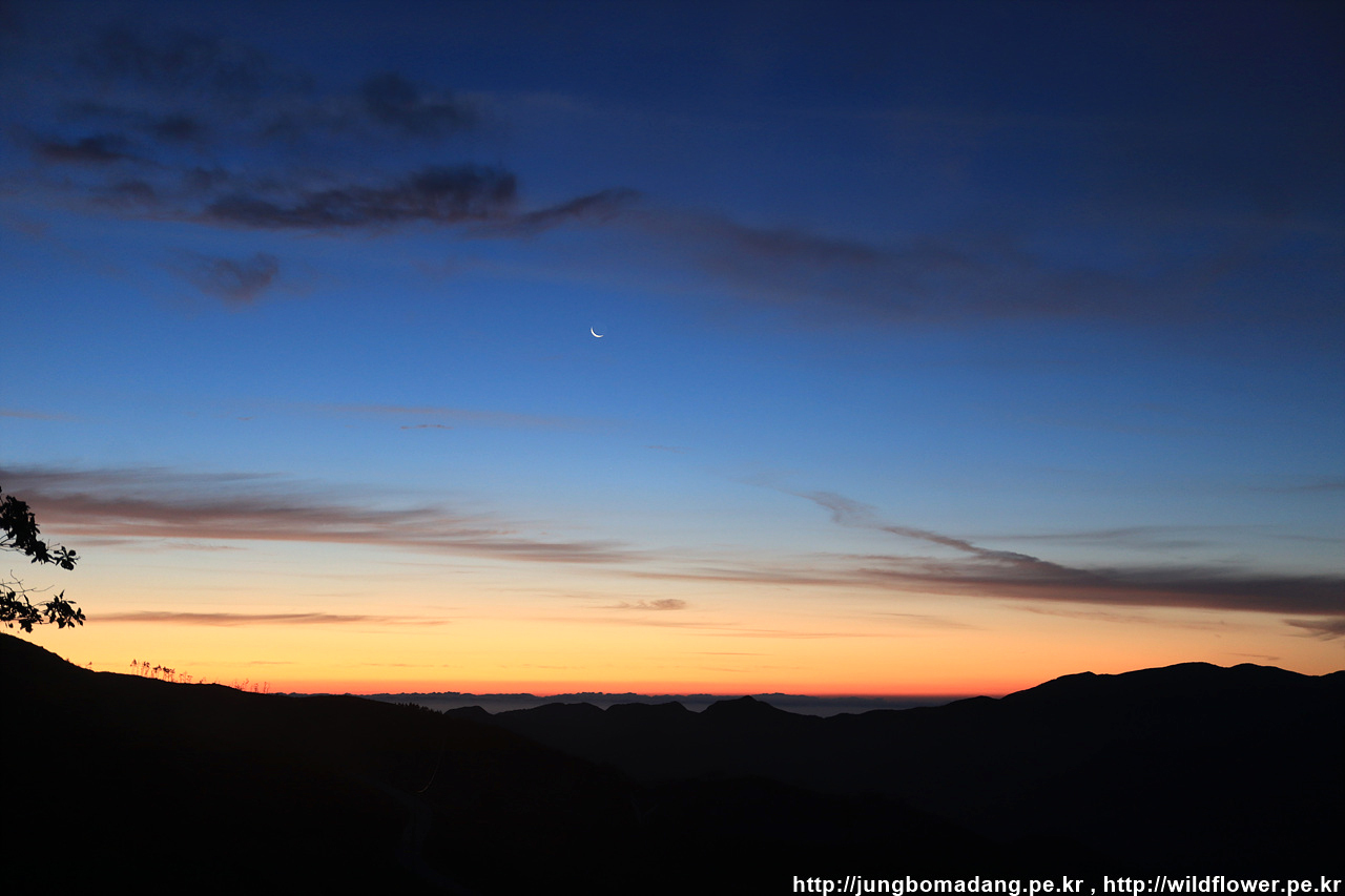 이게 웬일인가요! 건의령 도착하니 별들도 보이고, 달님도 보이고, 심지어 일출도 볼 수 있을 지 므른다는 희망을 품을 정도의 날씨가 맞이합니다. 근데 바람이 좀 차고 기온이 다소 쌀쌀한 건 살짝 걱정스러운 데, 해가 뜨면 금방 기온이 오를 테니 크게 걱정할 일은 아닙니다.