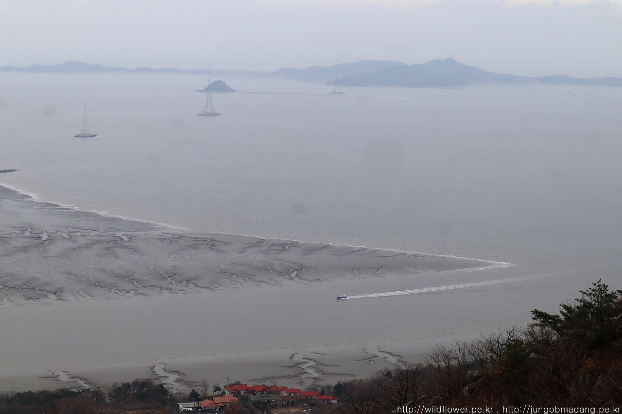 소송도, 대성도 사이로 이어지는 송전탑이 인상적입니다