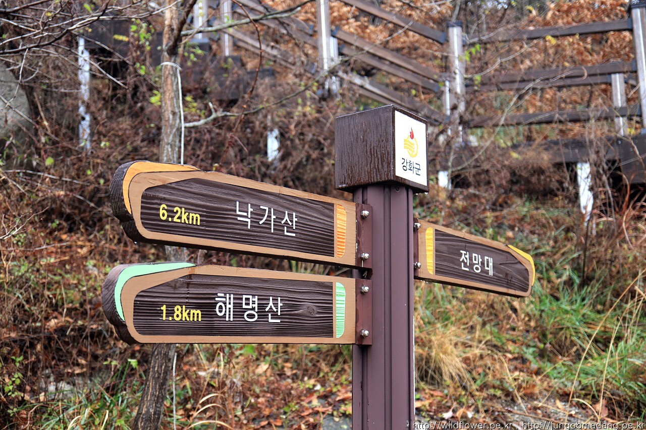 이정표에 맺힌 빗방울이 해명산이 이쪽이라고 해명중입니다. 석모도 도착 전까지 전득하니 내리던 비는 다행히 산행 출발 전 그칩니다. 행운은 이정도만 해도 행복합니다.