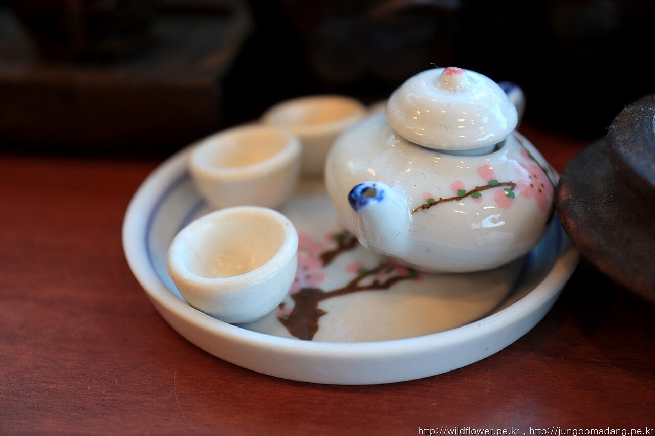 식당안에 장식중인 귀여운 사이즈의 옹기 작품들..