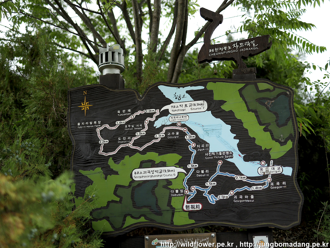 제천 시내로 가기 위해 나름 교톻편이 괜찮은 수산면으로 걸어 가고 있습니다. 시작한 곳은 버스가 하루 3대만 운행합니다.