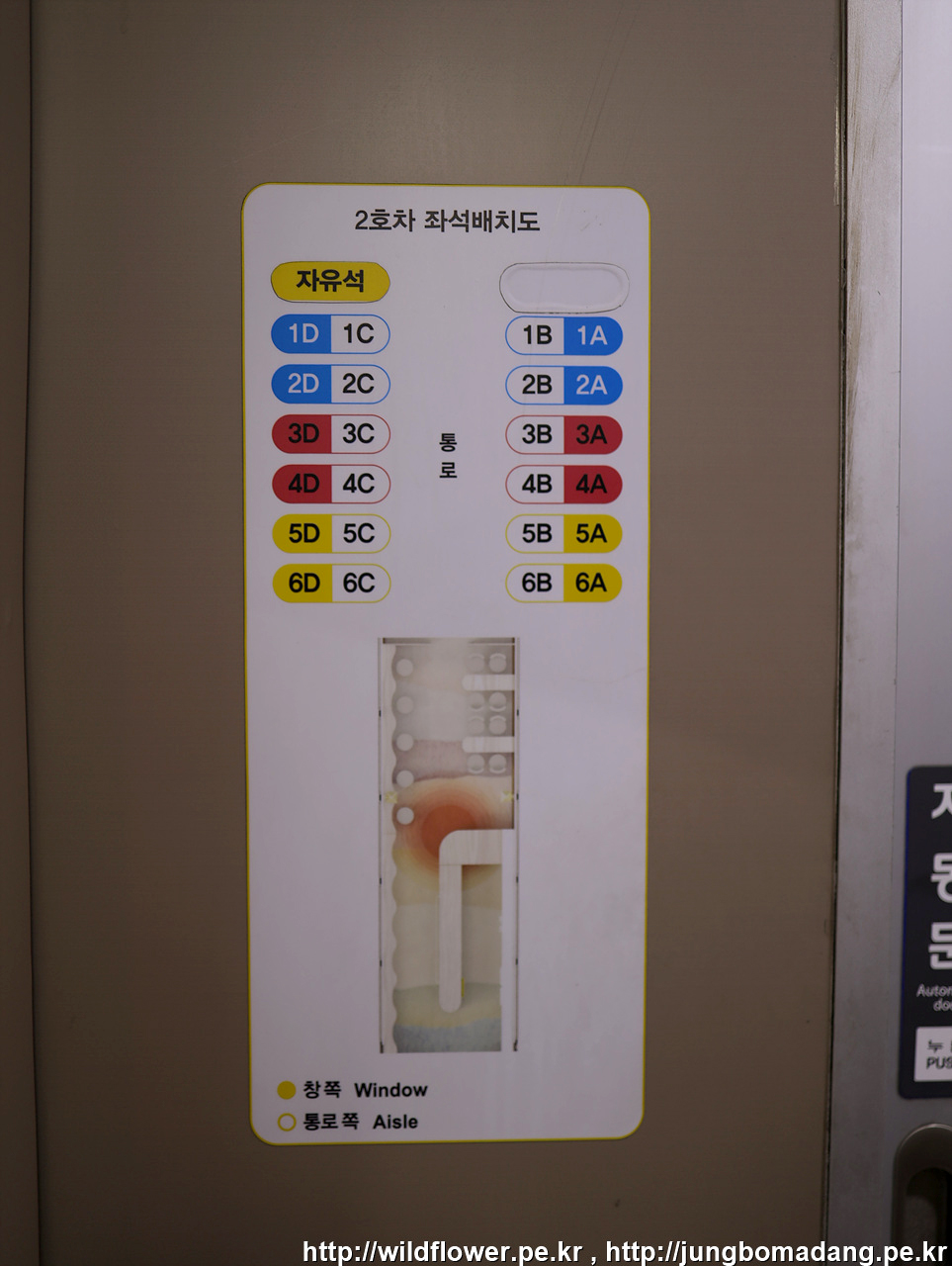 2호차는 보시다 시피 좌석의 수가 적습니다.