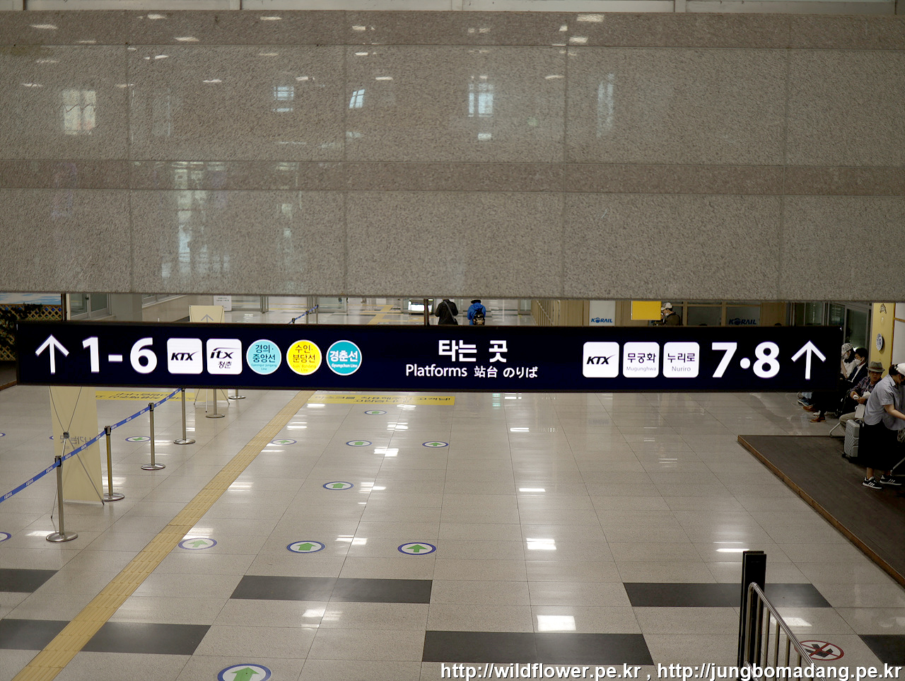 슬슬 시간이 되어 7번 플랫폼으로 이동합니다. 아리랑 열차는 특별 편성된 것으로 아래 안내에 KTX, 무궁화, 누리호에는 포함되지 않아 어르신들이 어디서 타야 하는 지 안내 인원이 부족해서 헤깔려 하시네요.