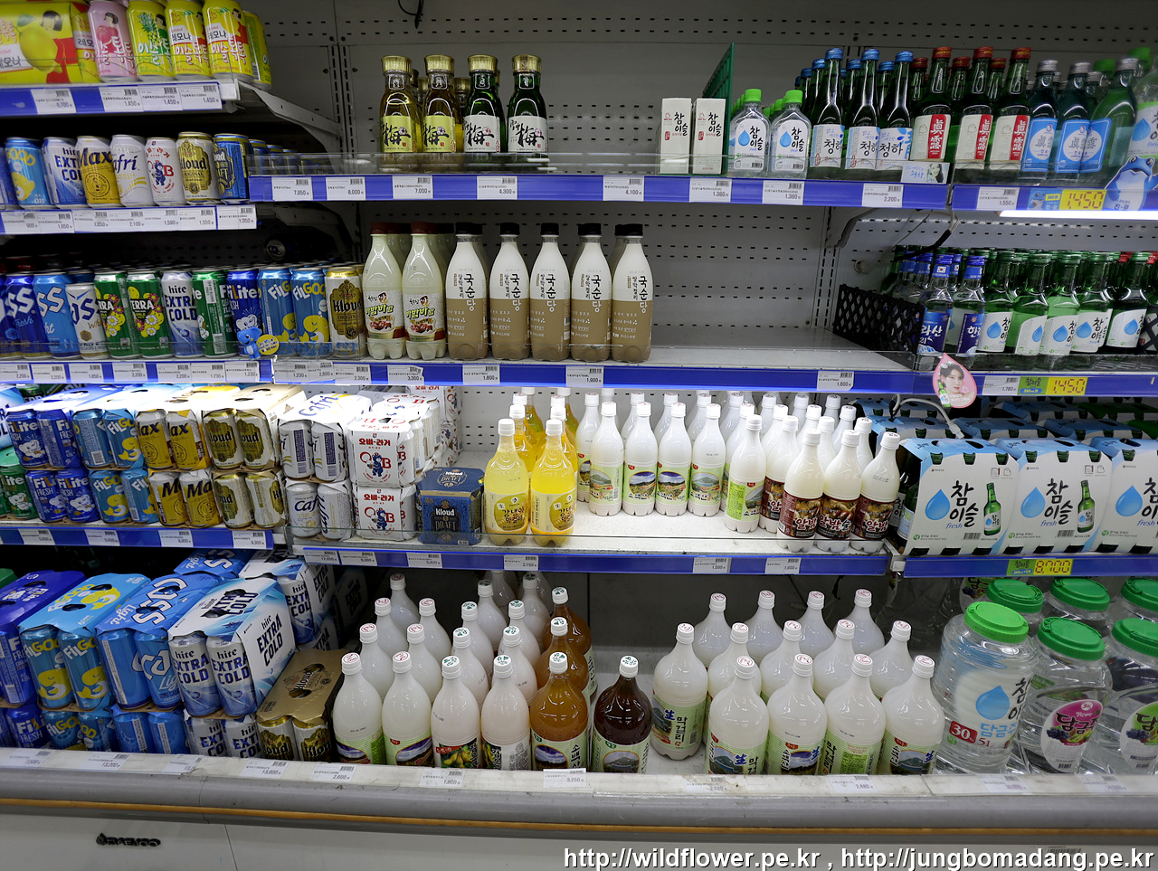 막걸리 사러 왔습니다. 대강양조장의 제품을 팔길래 가격은 동동주(12도)라서 다소 비싸지만(1.7L, 3250원) 한병 겟하고, 과자 몇개 이렇게 구매합니다.