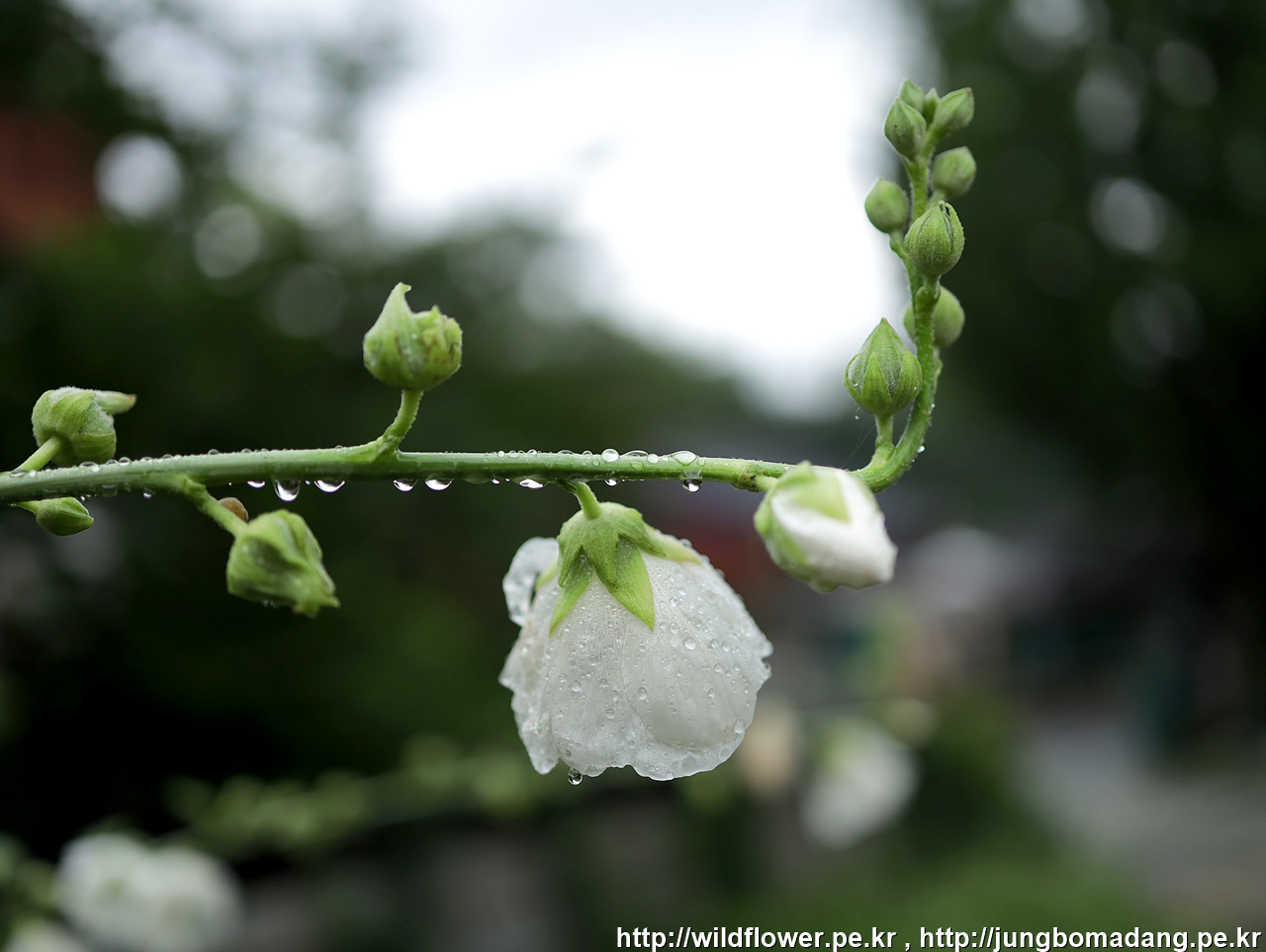 접시꽃 - 이틀간의 비바람에 시달려 그런 지 고개를 푹 숙이고 있습니다.