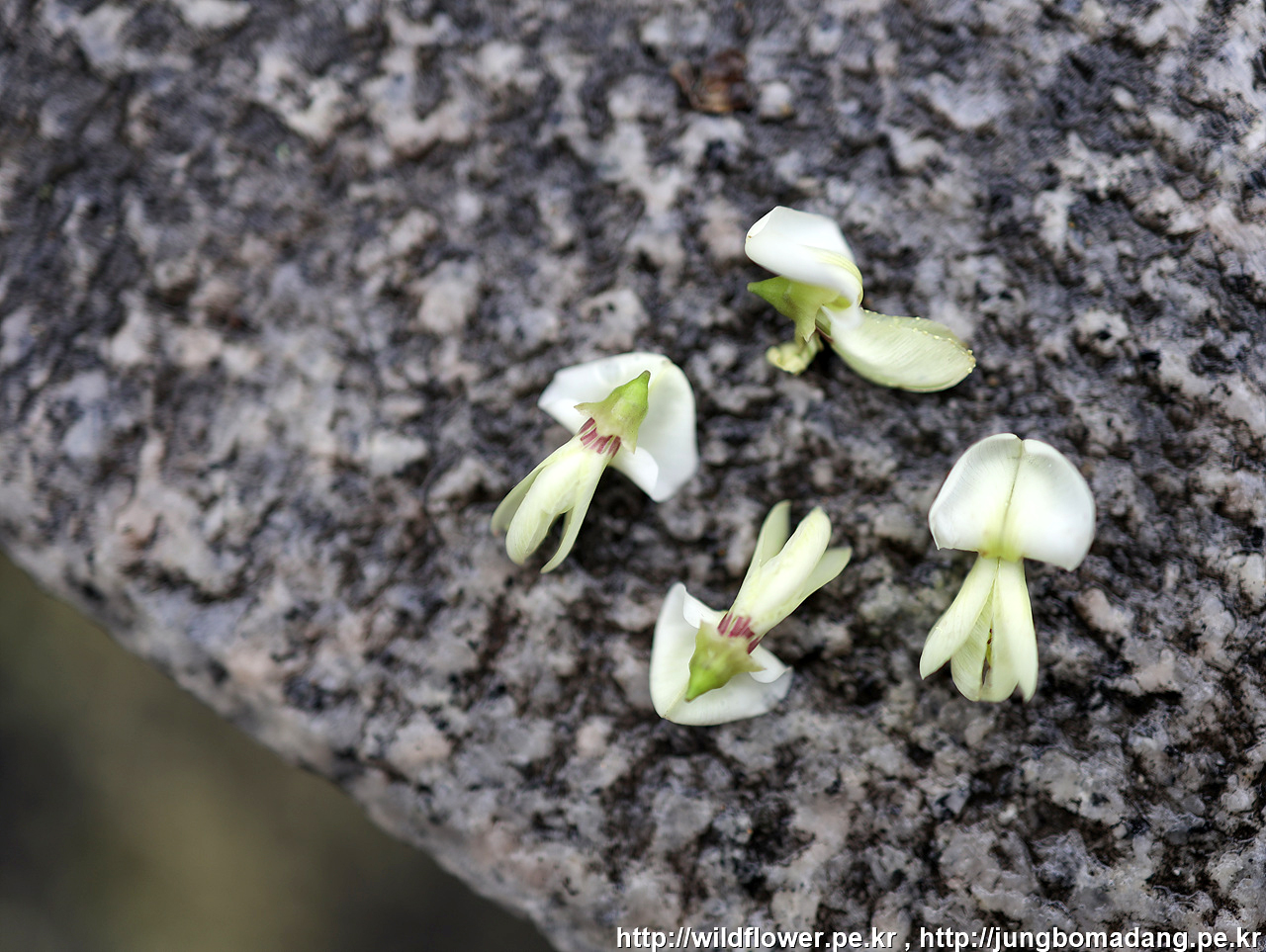 회화나무 - 낙화한 꽃을 몇 개 주워서 좀 더 입체적으로 담아 봅니다. 꽃 모양을 보면 콩과 식물이라는 것을 알 수 있습니다.