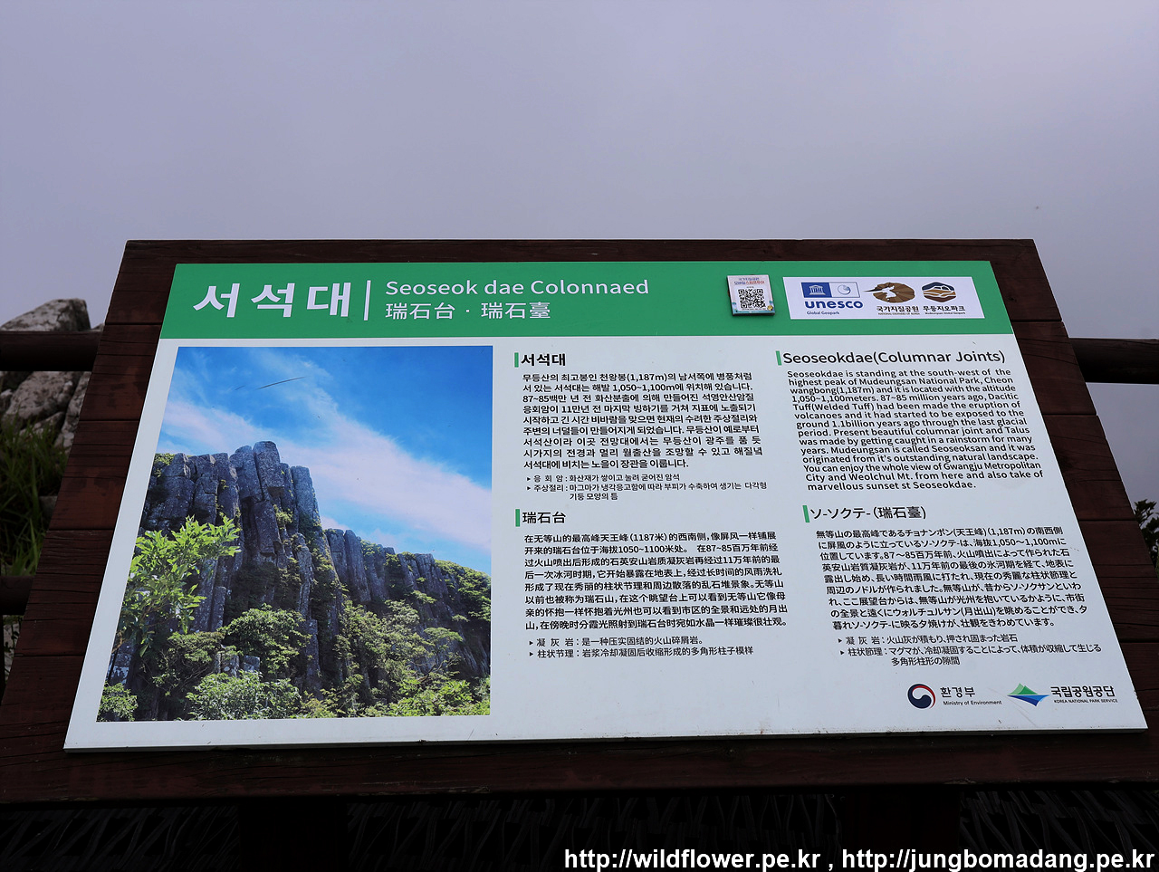 방금 지나온 서석대 방면입니다. 서석대 정상부는 운무에 살짝 가려 있네요.