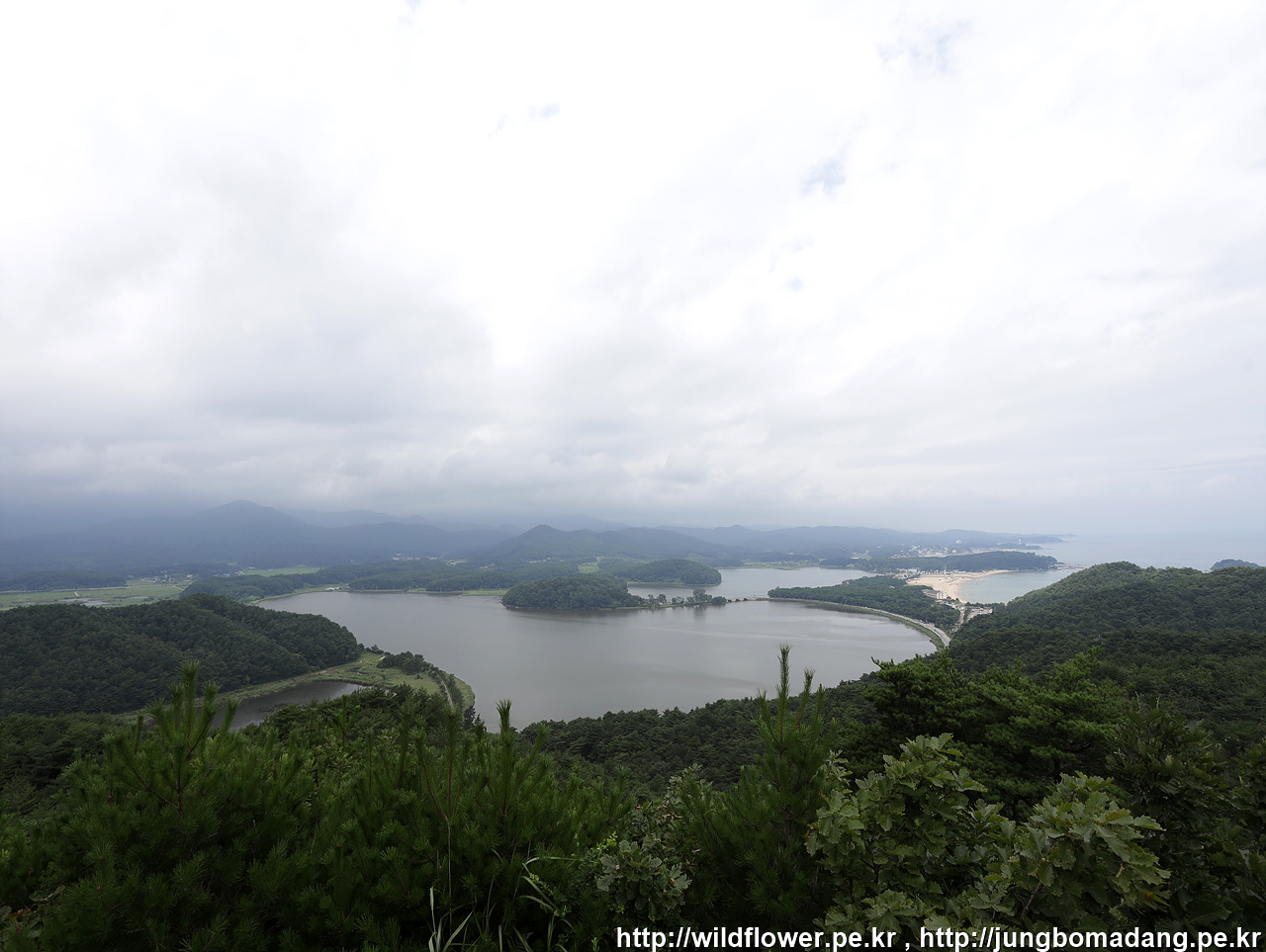 응봉 정상에 도착하여 화진포를 조망합니다.