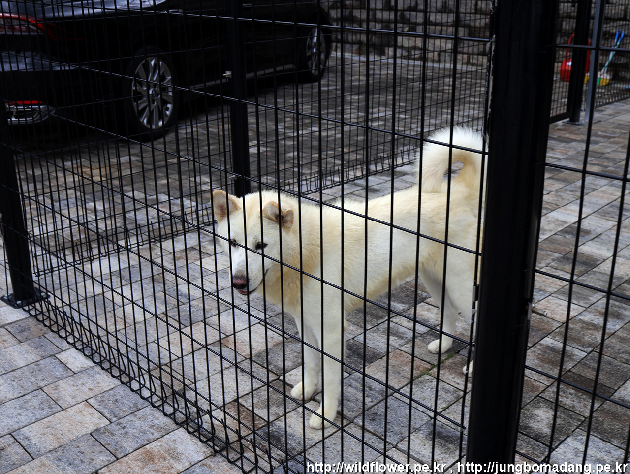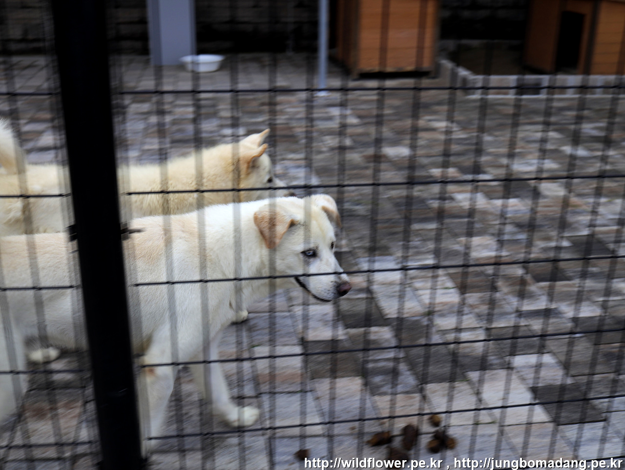 풍산개 두마리를 가두어 놓았습니다.