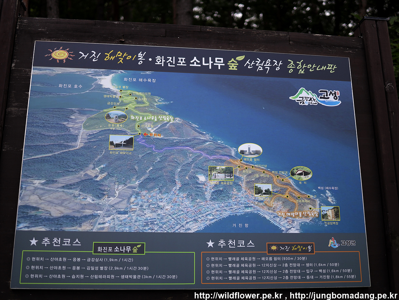 계단에는 고성 8경 소개와 사진이 부착되어 있습니다.