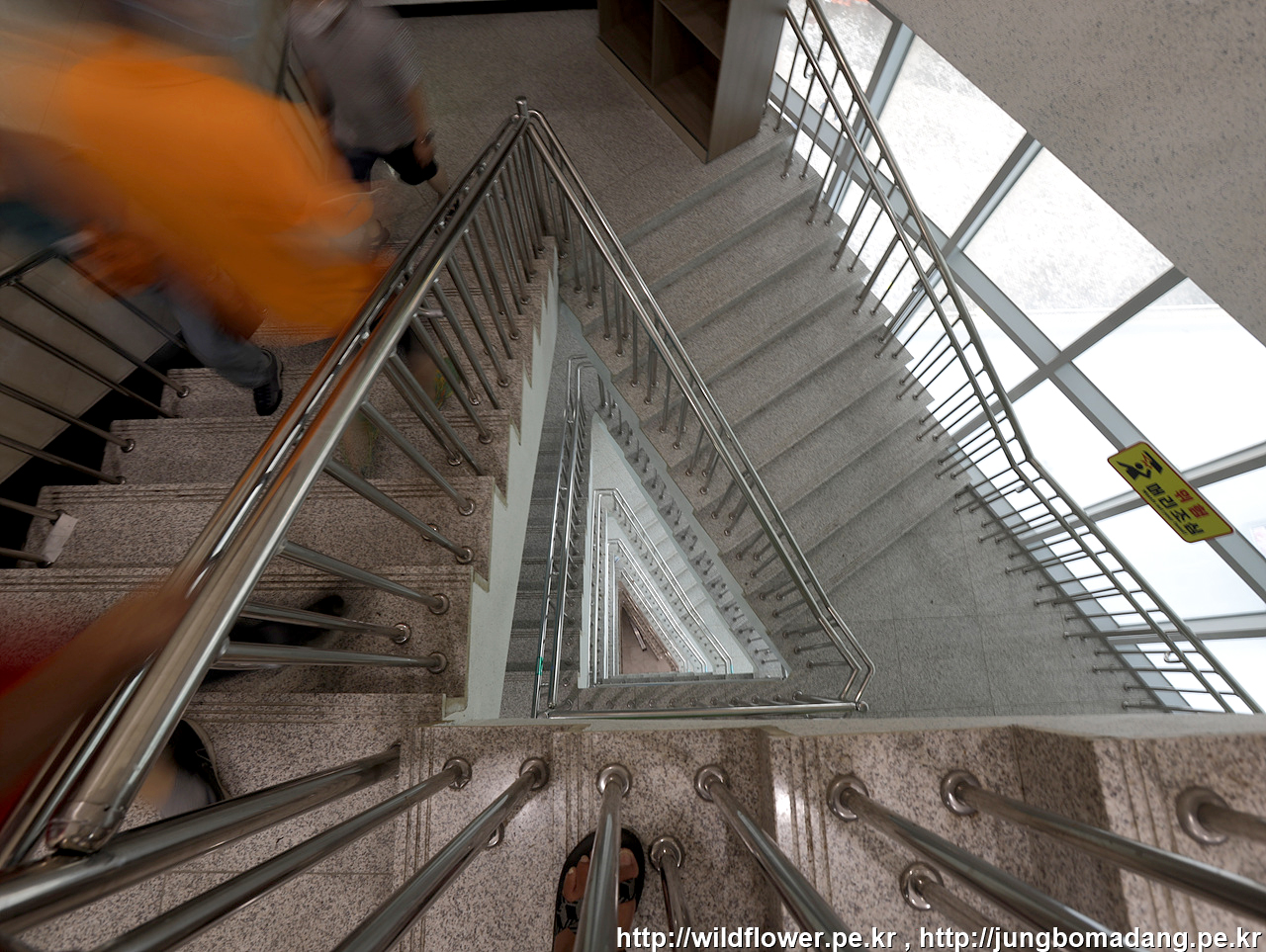 3층으로 오르 내리는 엘리베이터는 노약자에게 양보하고, 계단으로 갑니다.