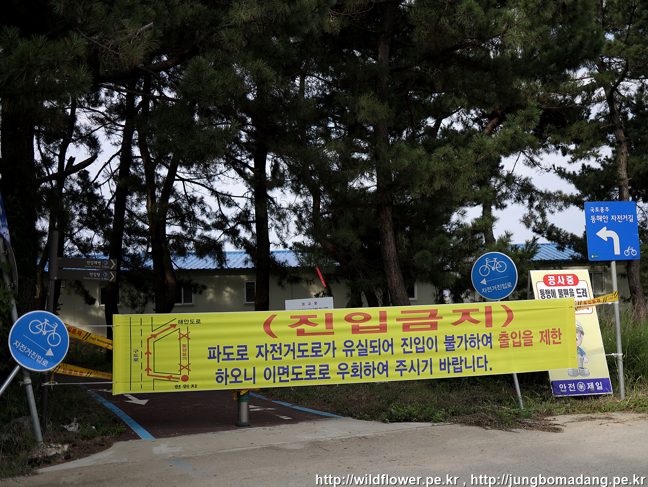 아하! 어쩔 수 없이 차량이 다니는 갓길로 살짝 우회하게 생겼네요.