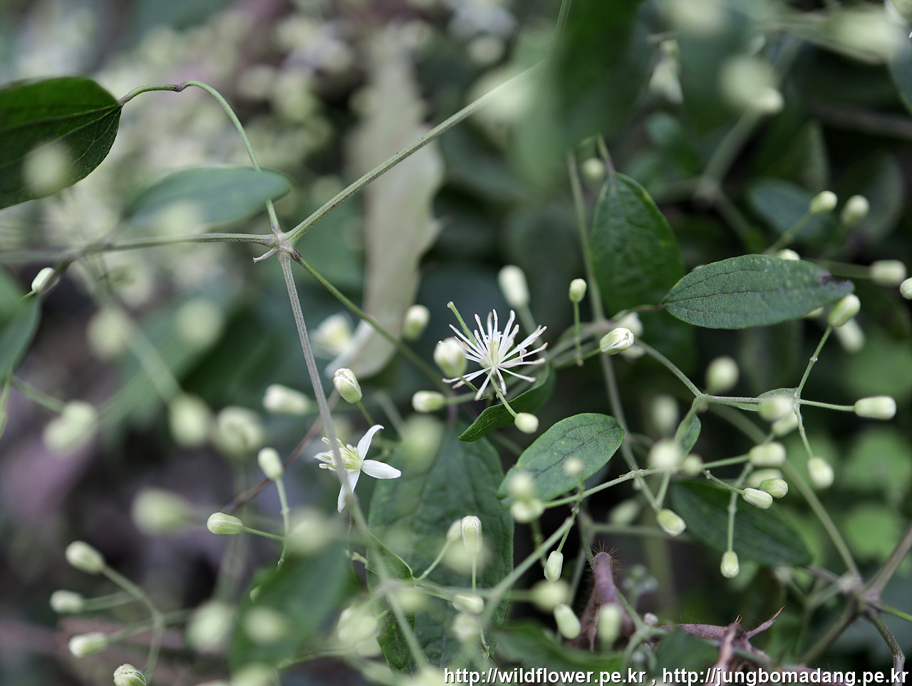 사위질빵 - 잎. 자매품 할미밀망이라는 꽃이 있는 데, 잎이 사위질빵은 3장, 할미밀망은 5장 입니다.