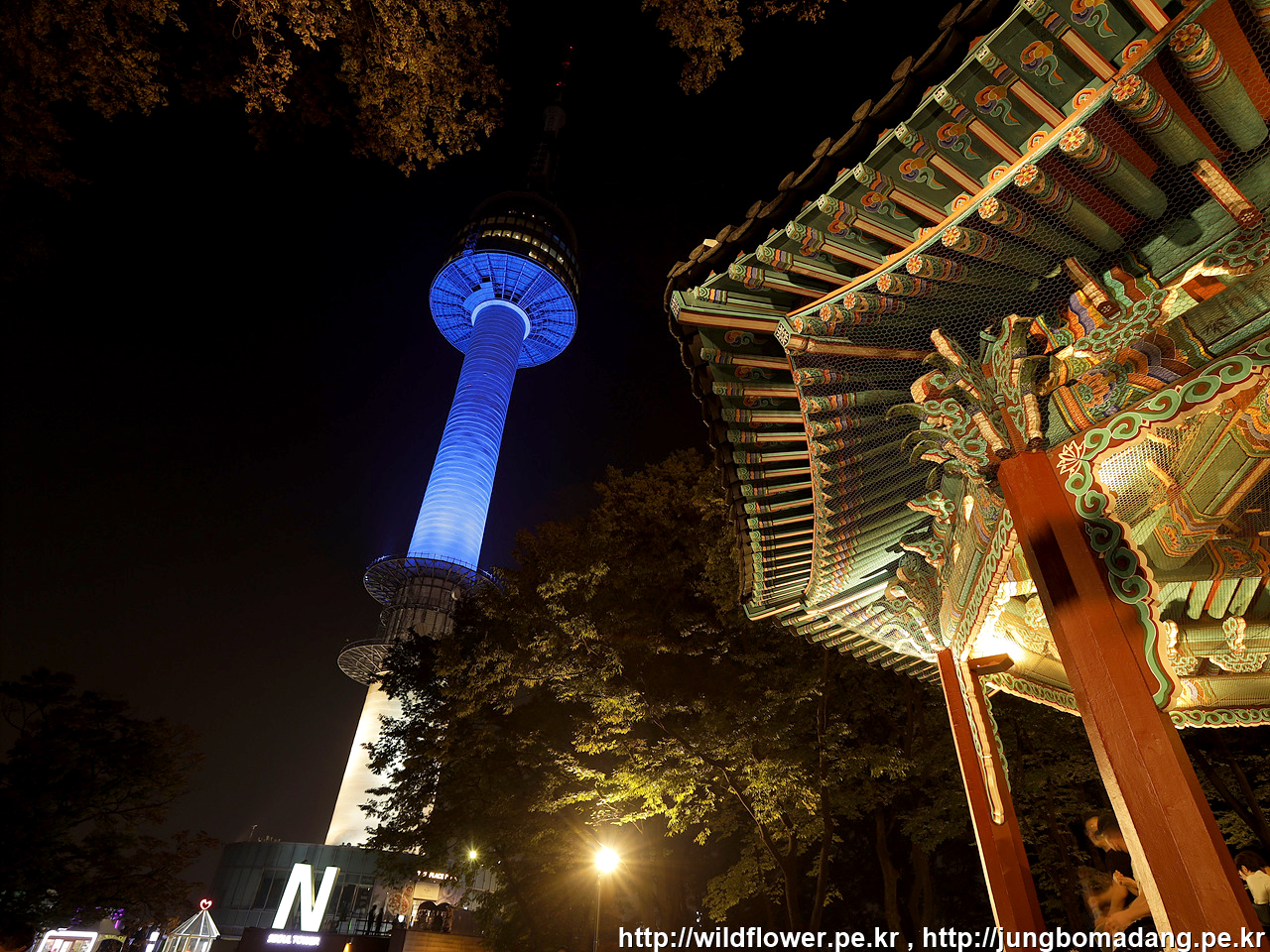 팔각정(우), 남산서울타워(중)