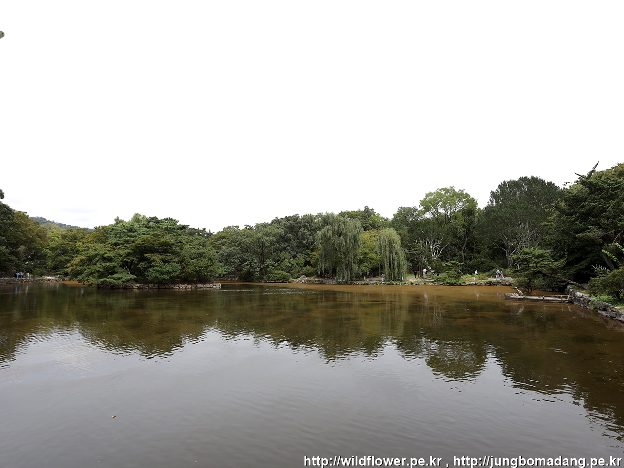 연못에 뭔가 노릇 노릇한 꽃들이 많이 보이네요.