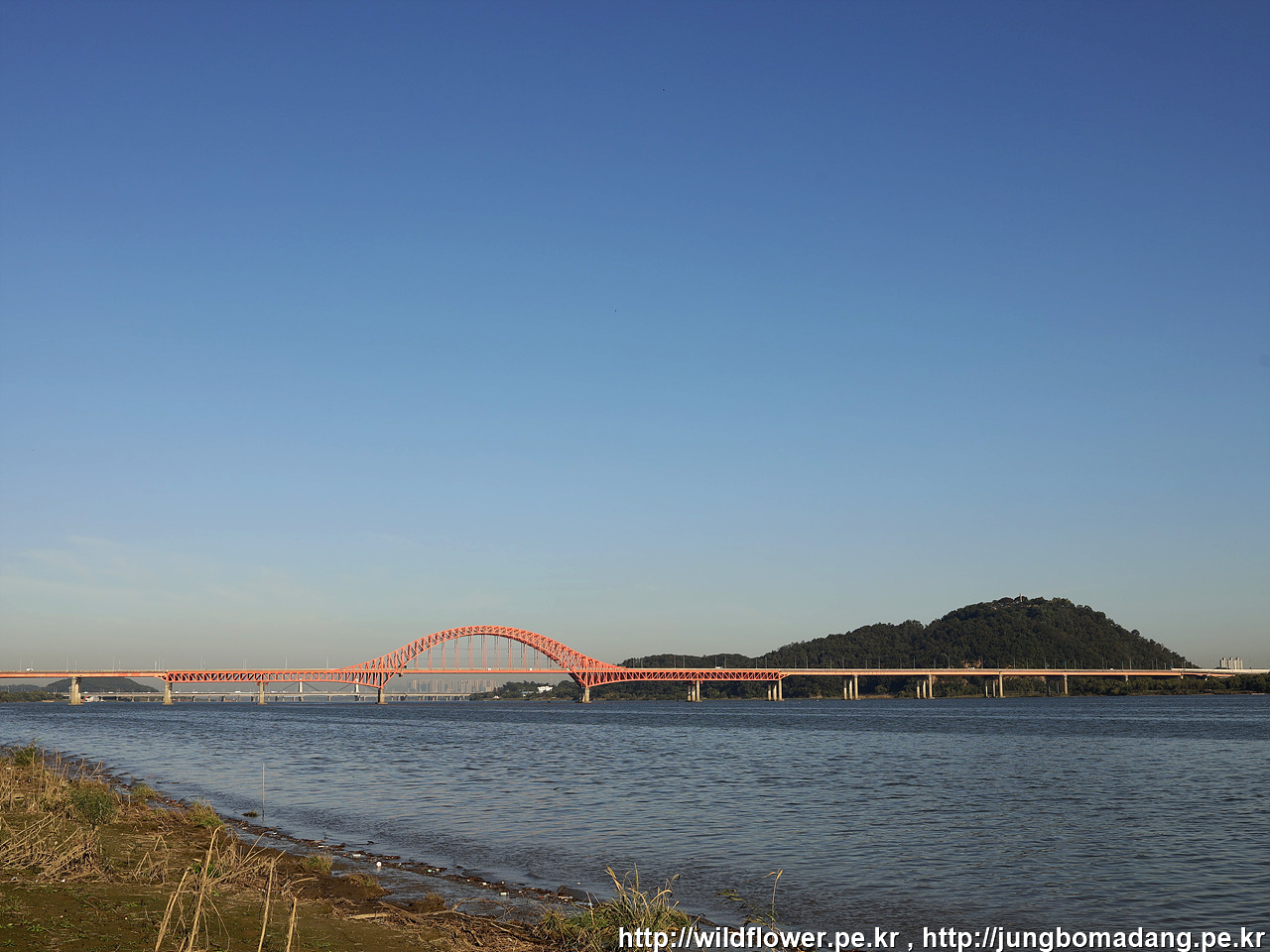 계양대교 위에서. 좌측으로 북한산이 보입니다.