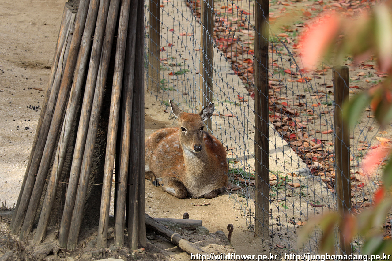 꽃사슴 방목장입니다. 방목장 주변에 울타리가 있어 윗쪽으로 지난 다리 위에서 몇 컷 담아 봅니다.