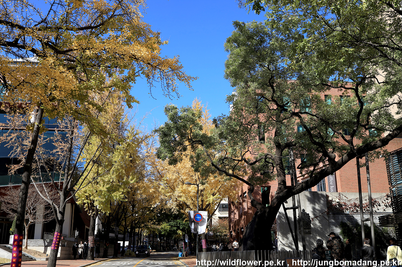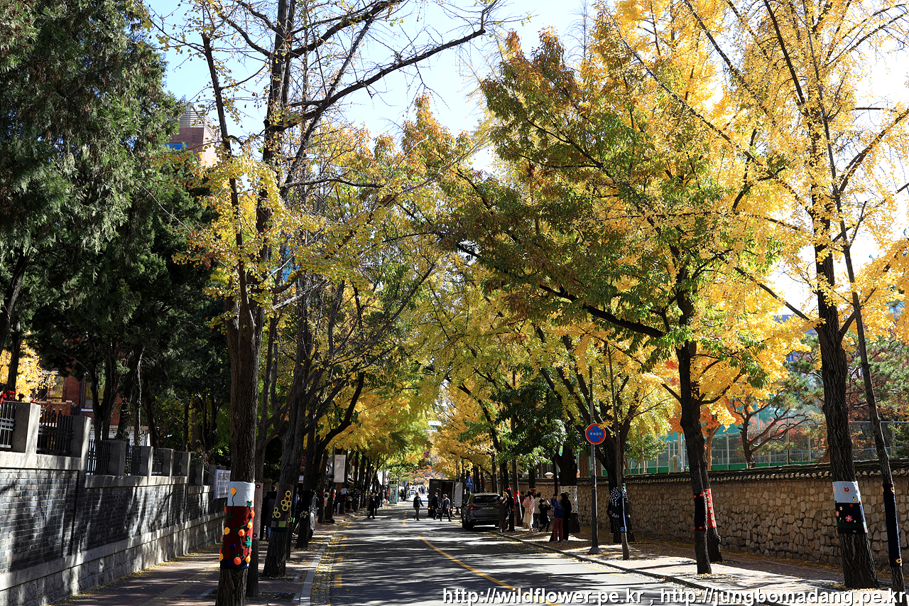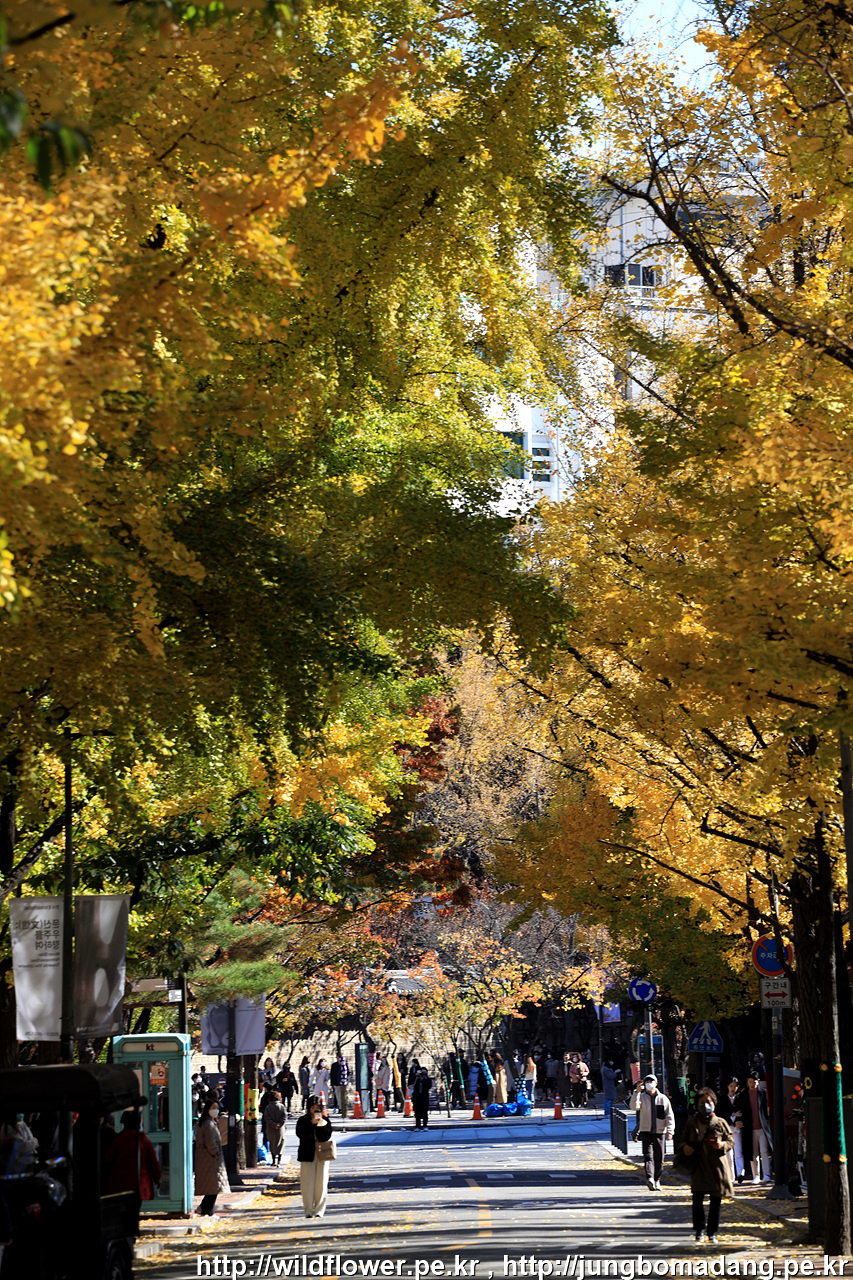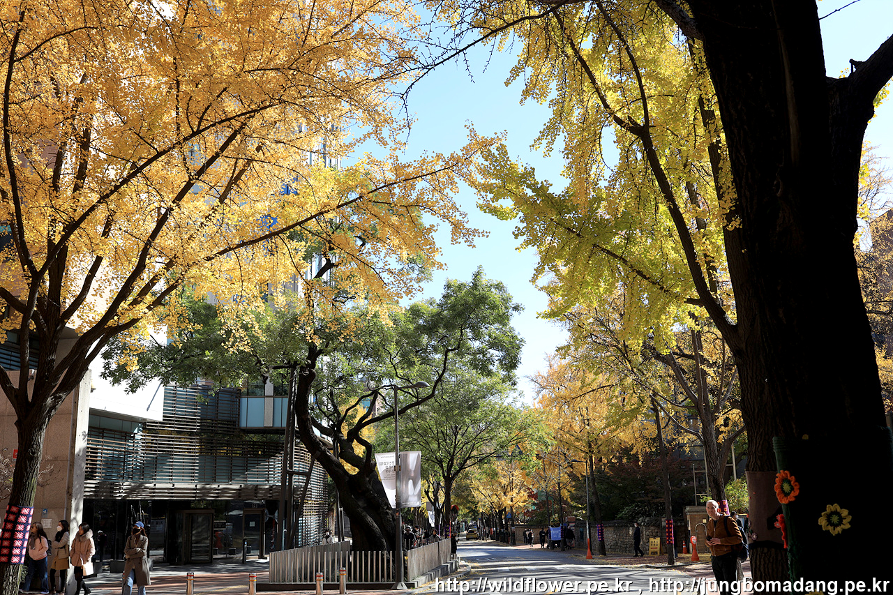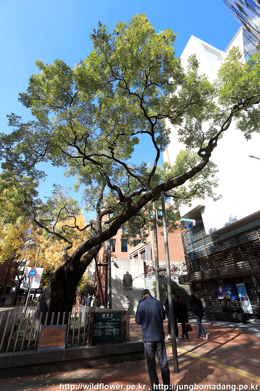 덕수궁길 주변을 둘러 봅니다. 노란 은행나무 사이 좌측에 보호수로 지정된 회화나무도 보입니다. 수령이 2022년 기준 544년입니다.