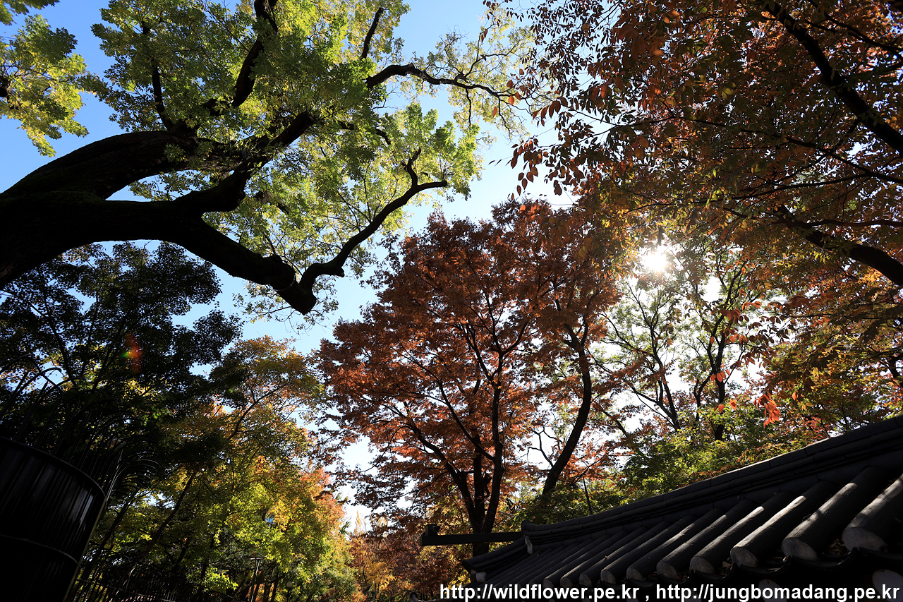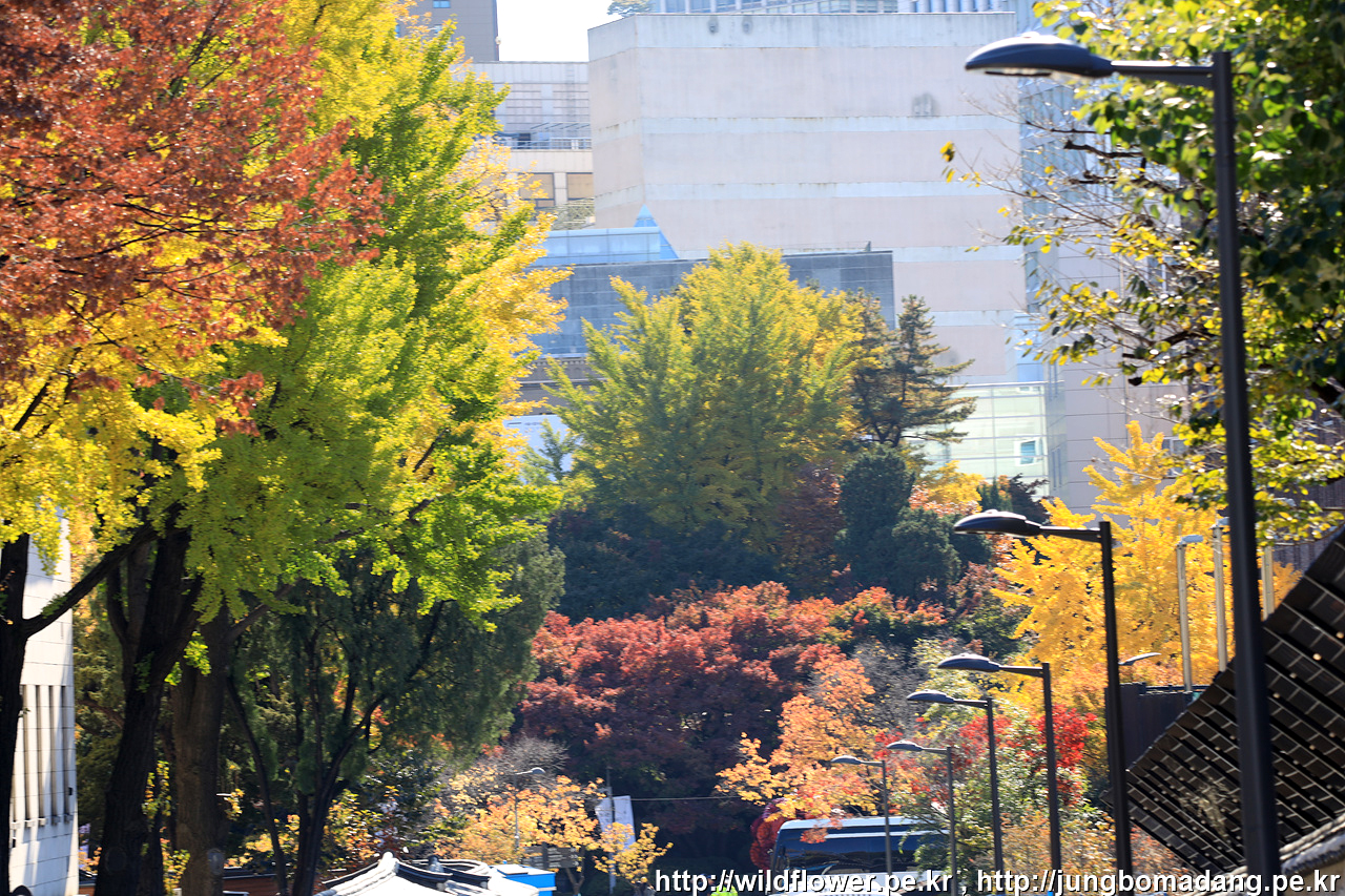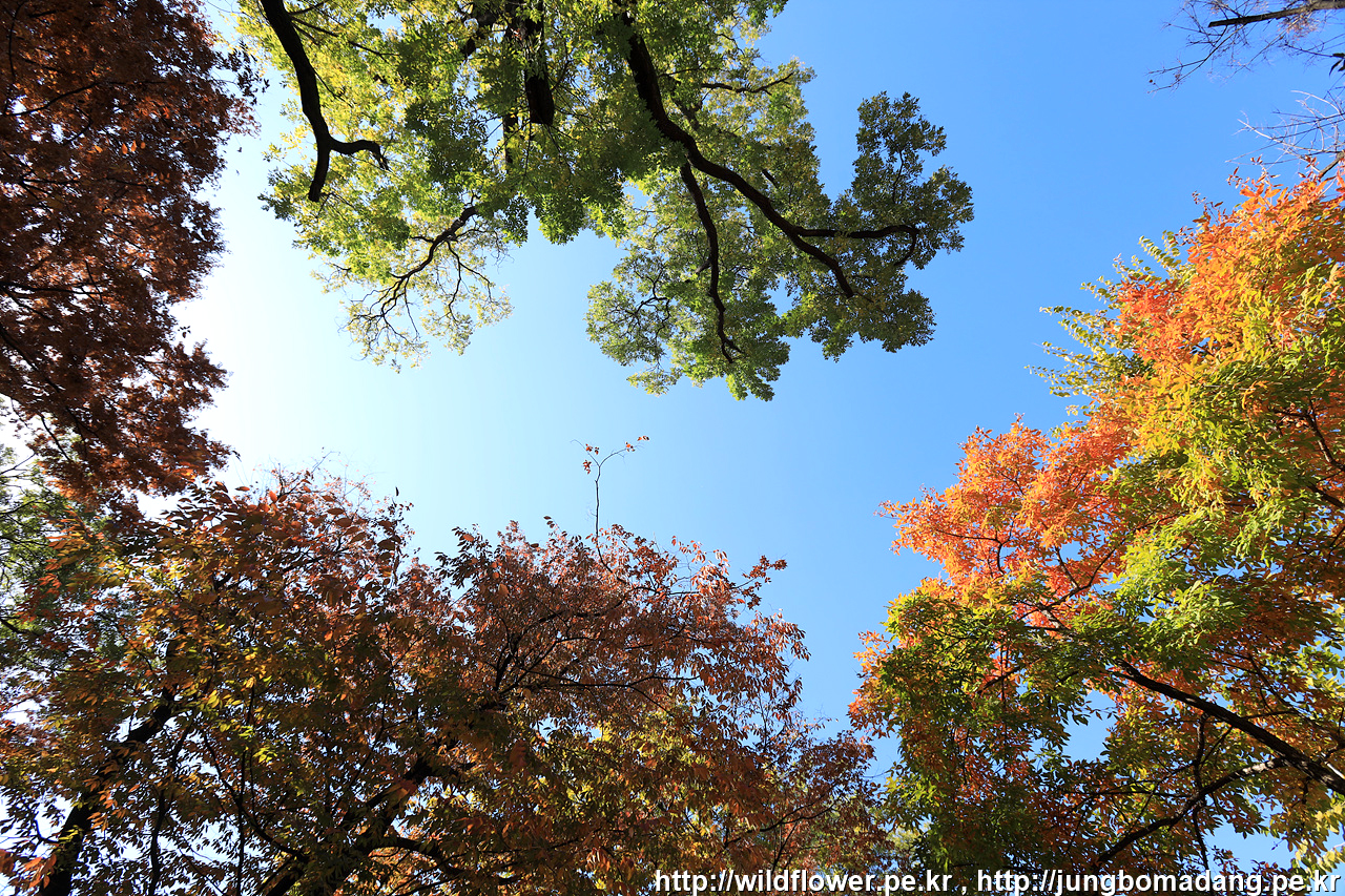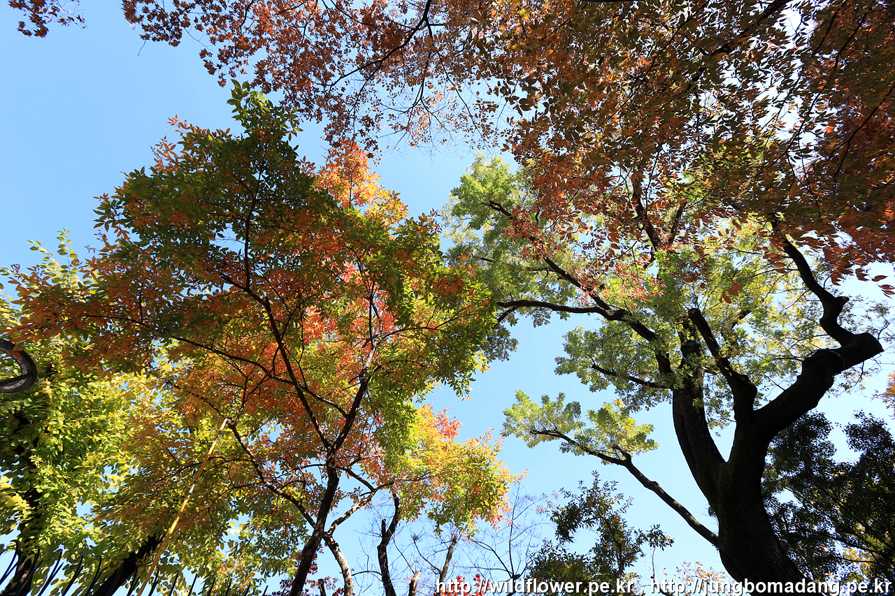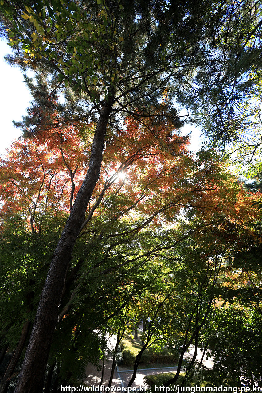 유난희도 알록 달록한 나무(좌)는 복자기, 상단에 초록빛은 회화나무