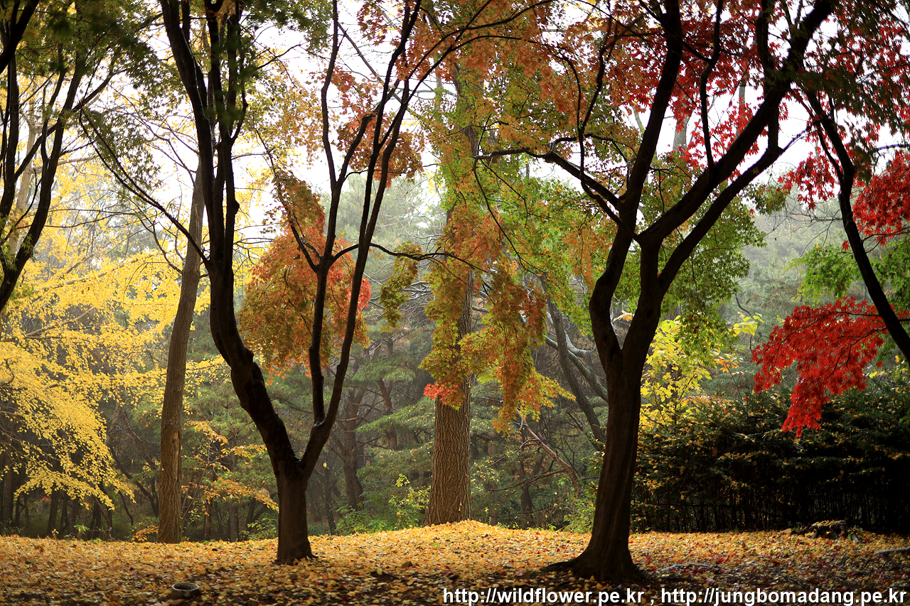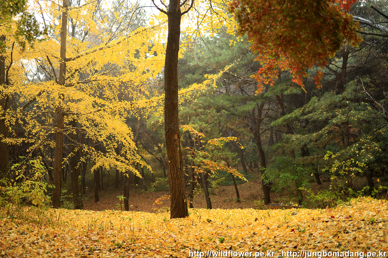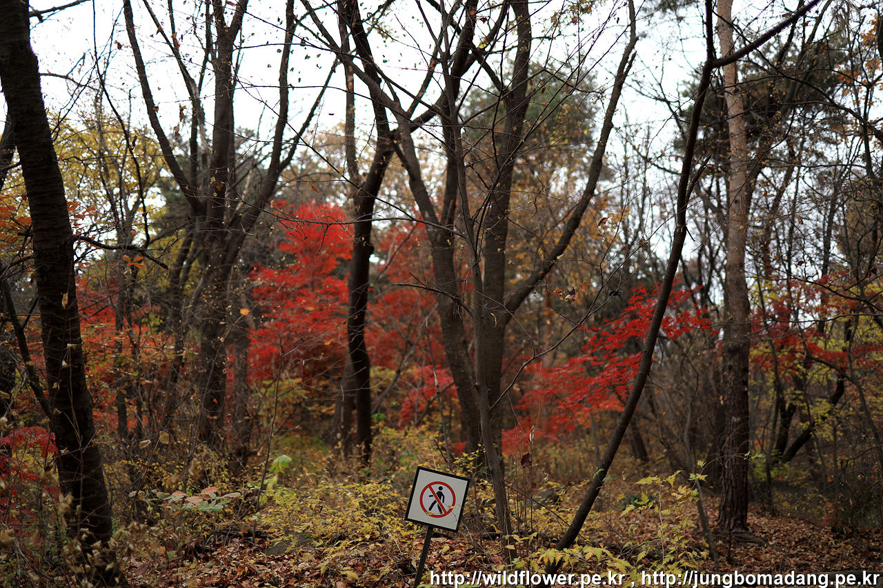 삼각지역으로 이동하기 위해 하산 중에 발견한 단풍. 비가 내리고 바람이 불어 잎이 제법 떨어지지만 사진으로 표현이 안되네요.