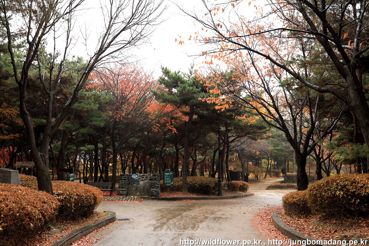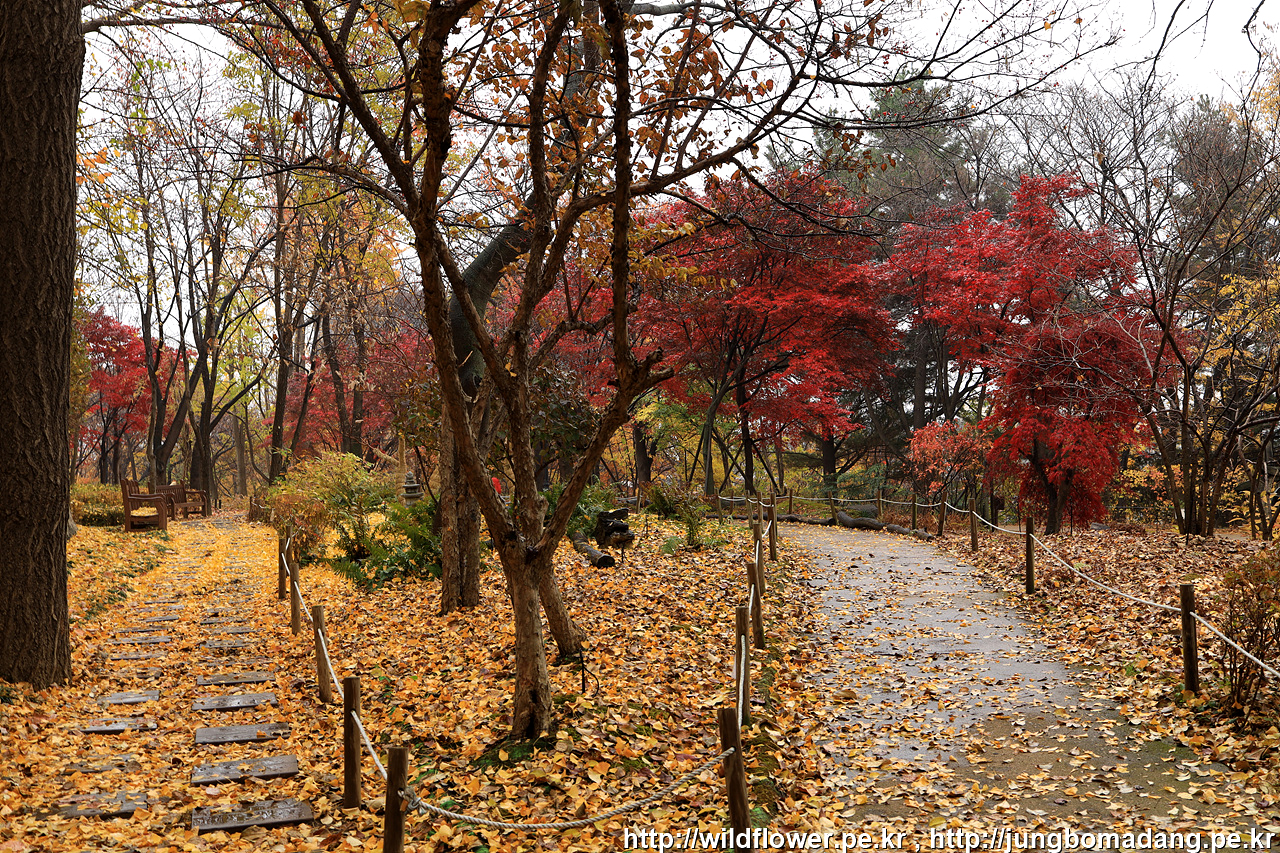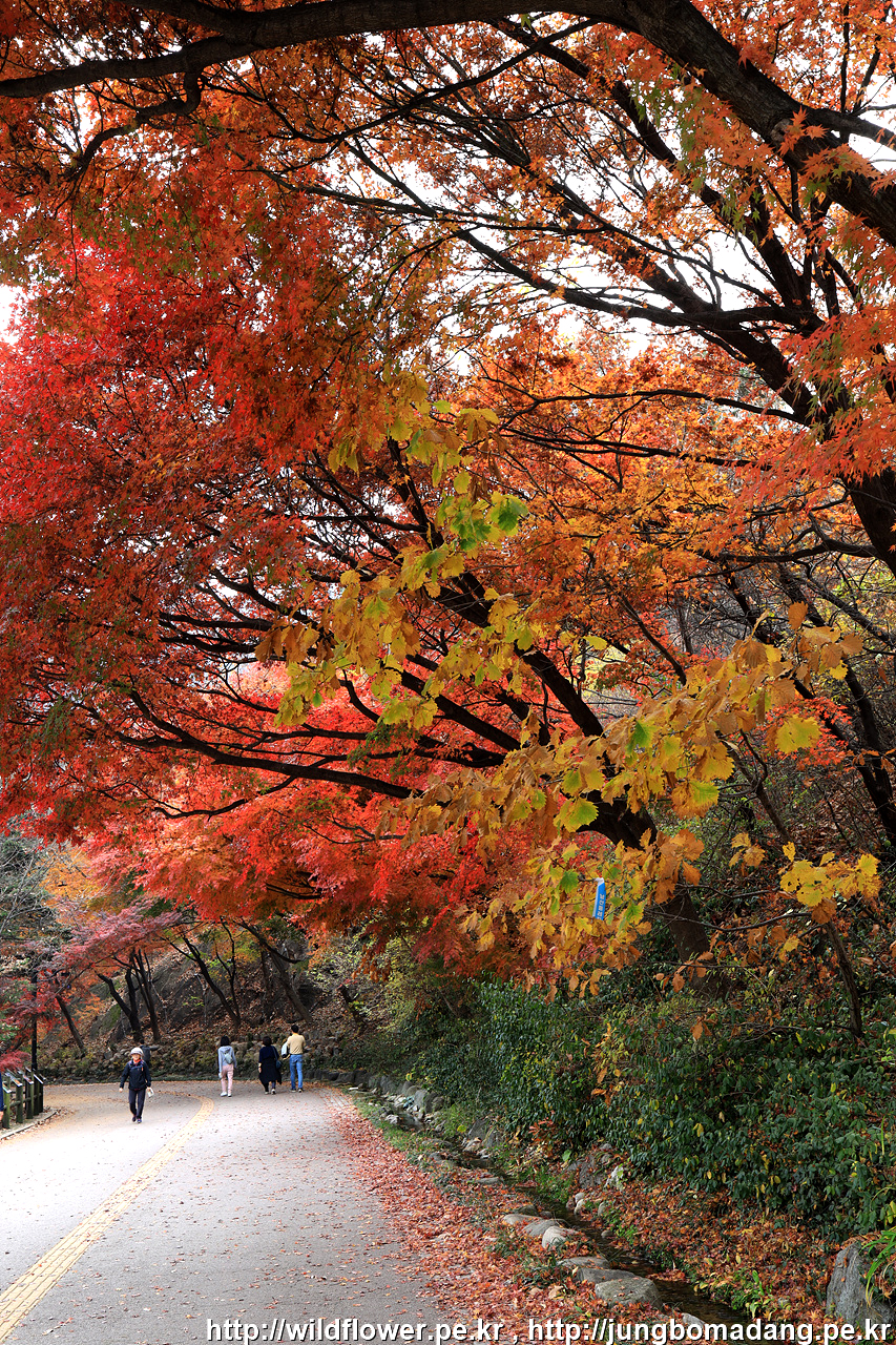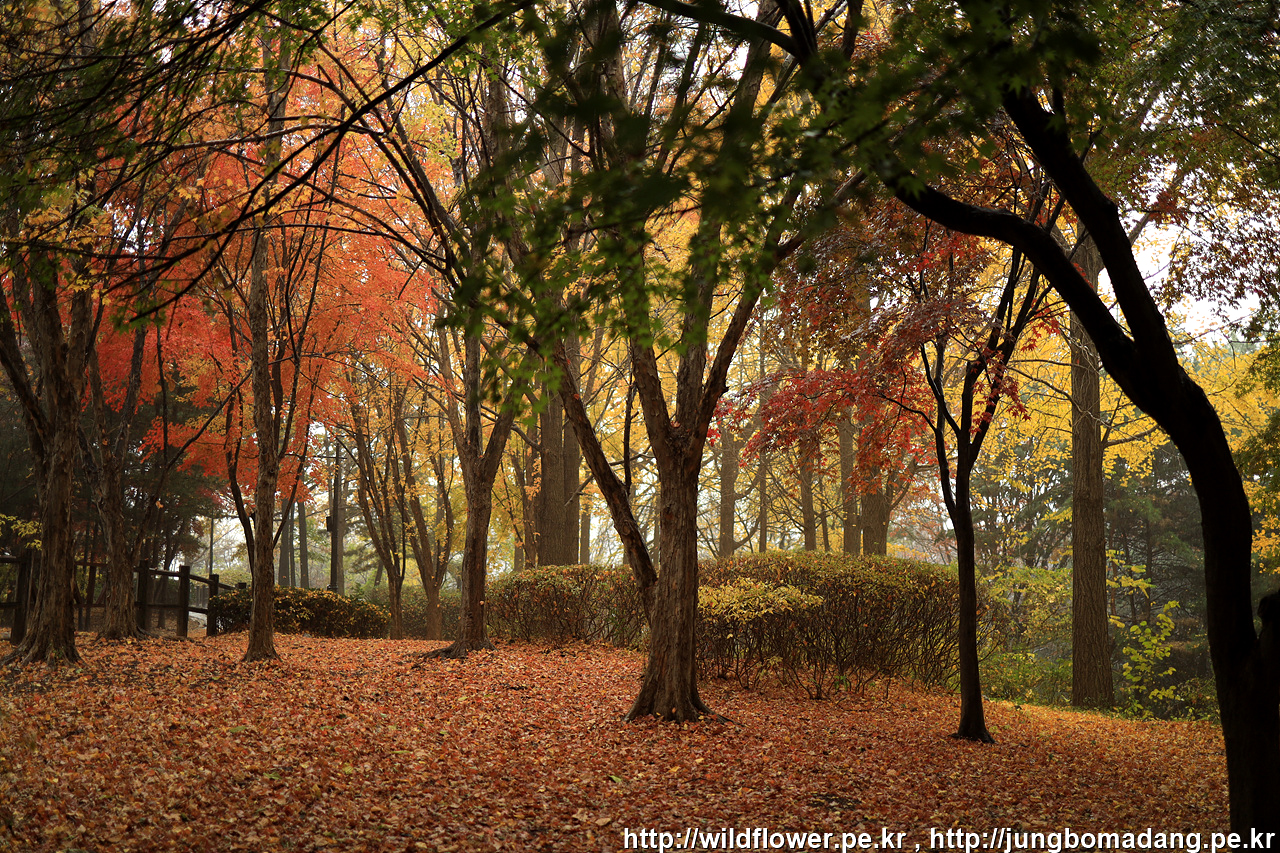 삼각지역으로 이동하기 위해 하산 중에 발견한 단풍. 비가 내리고 바람이 불어 잎이 제법 떨어지지만 사진으로 표현이 안되네요.