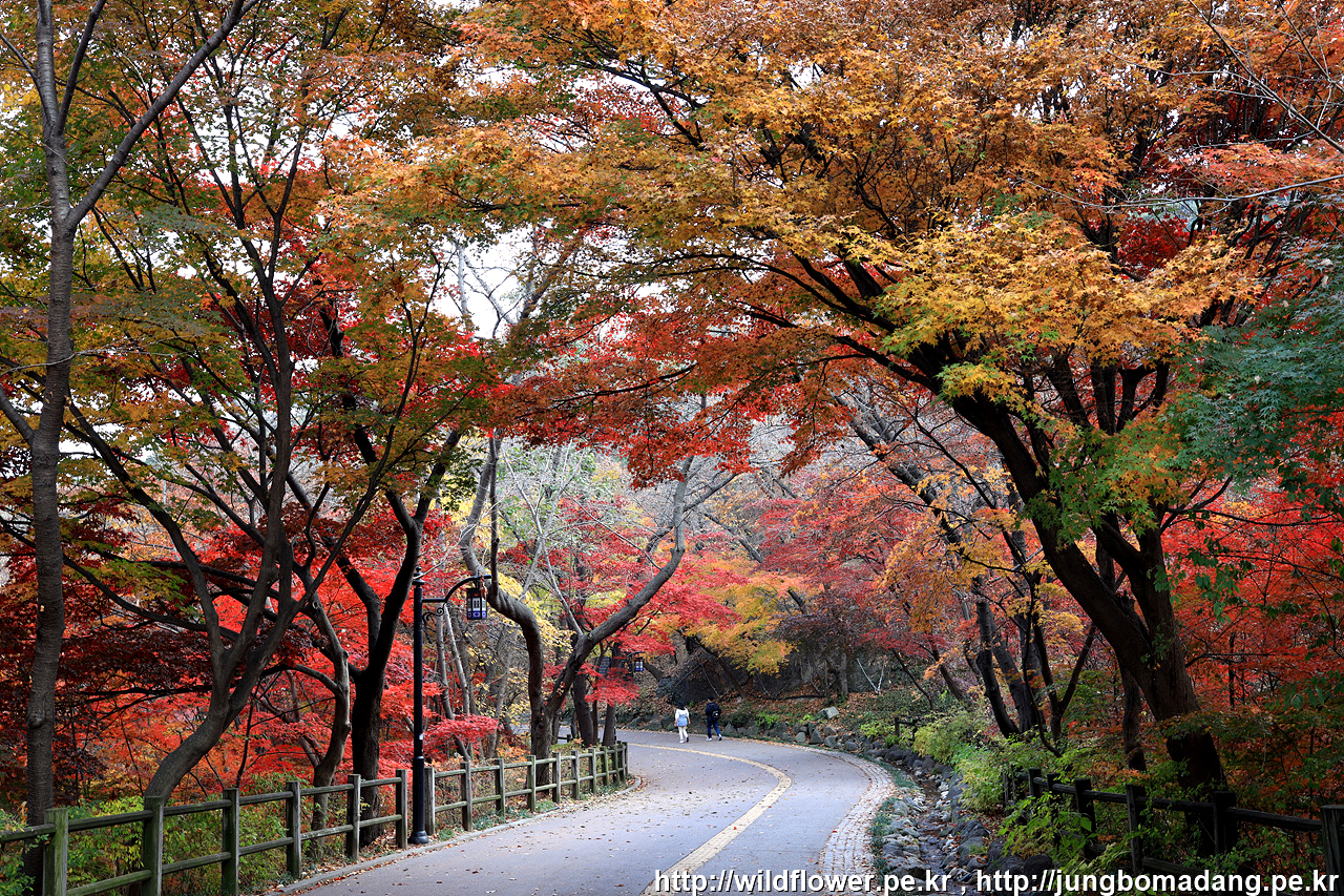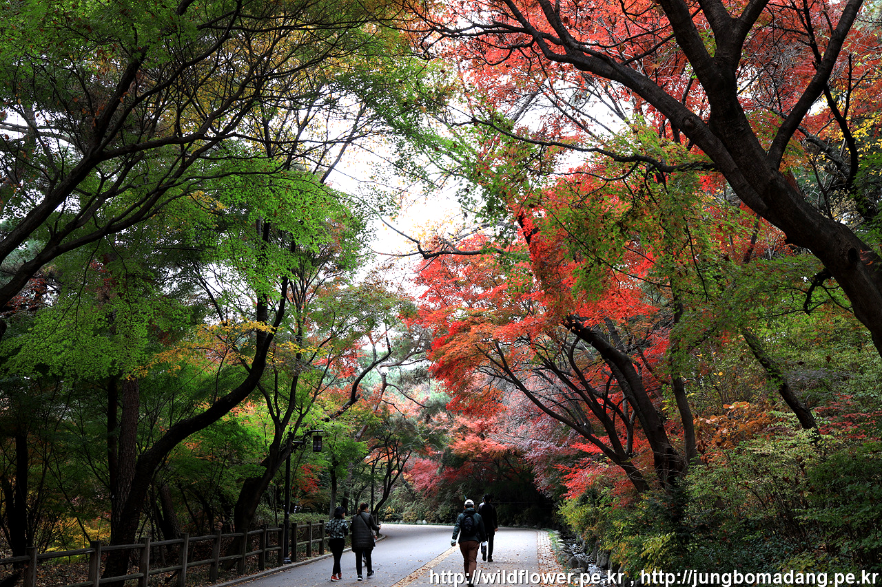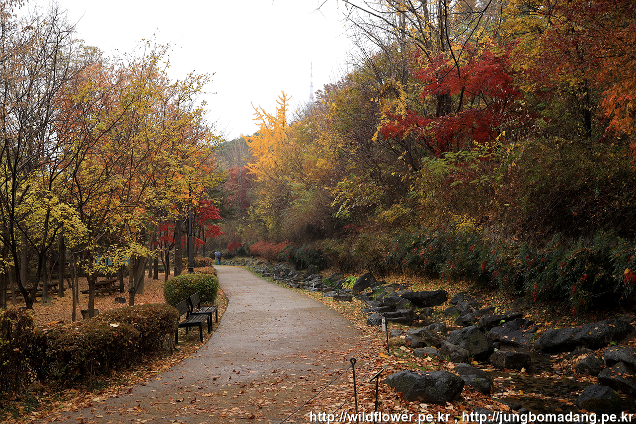 북측 순환 산책로의 동국대 인근은 아직 초록빛이 많은편입니다. 일주일 이상 지나야 붉게 물들 것 같네요.