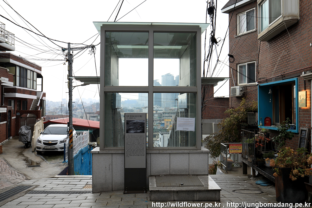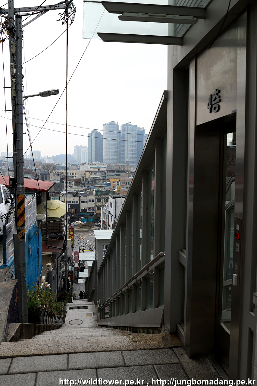 뭔가? 했는 데, 경사로에 승강기가 설치되어 있네요. 108 계단입니다. 승강기는 어르신들에게 양보하고 계단으로 살살 내려갑니다.