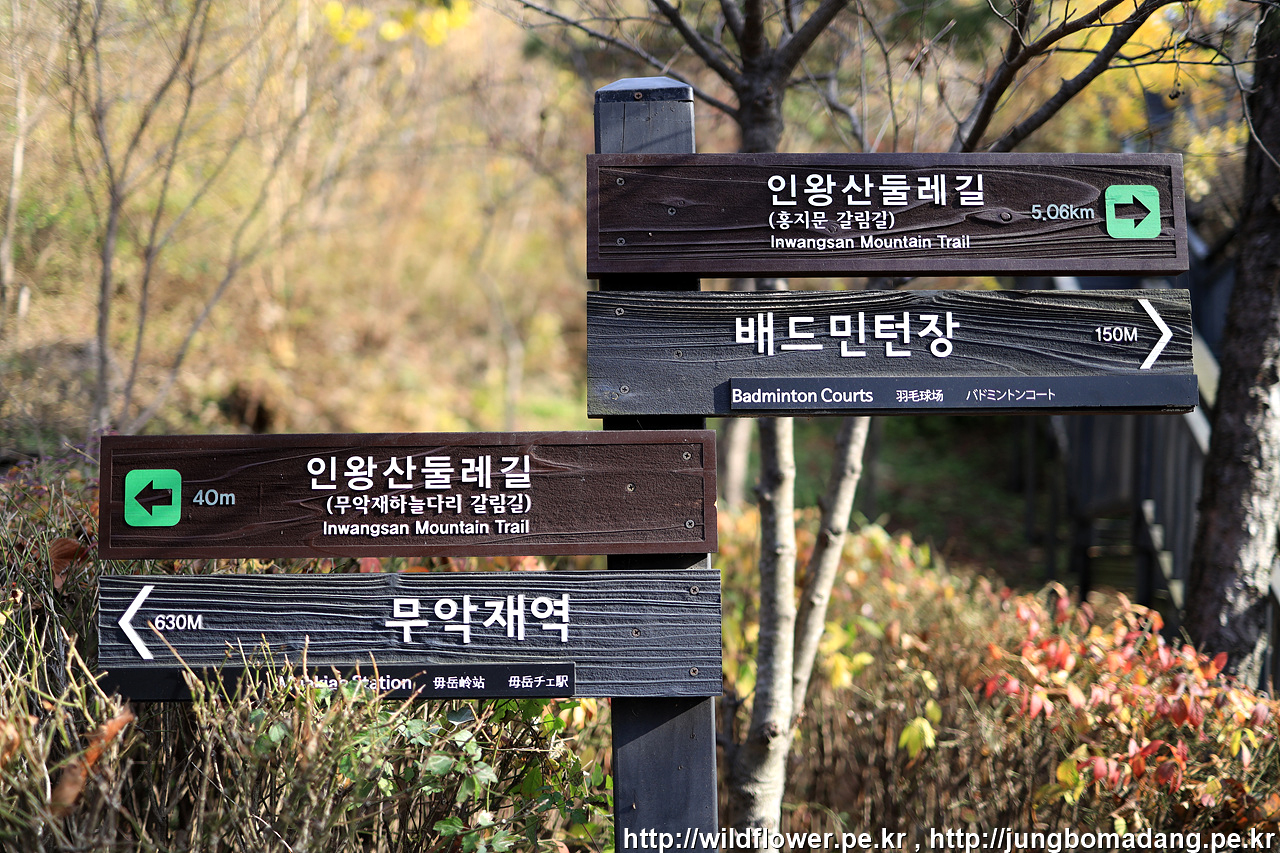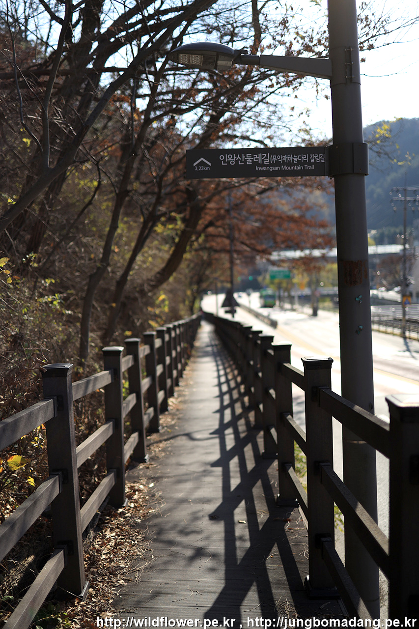 인왕산둘레길 홍지문 갈림길 방향으로 시작합니다.