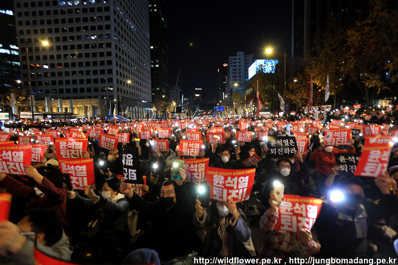 시청에서 숭례문까지 끝없는 촛불의 불빛이 밝힙니다.