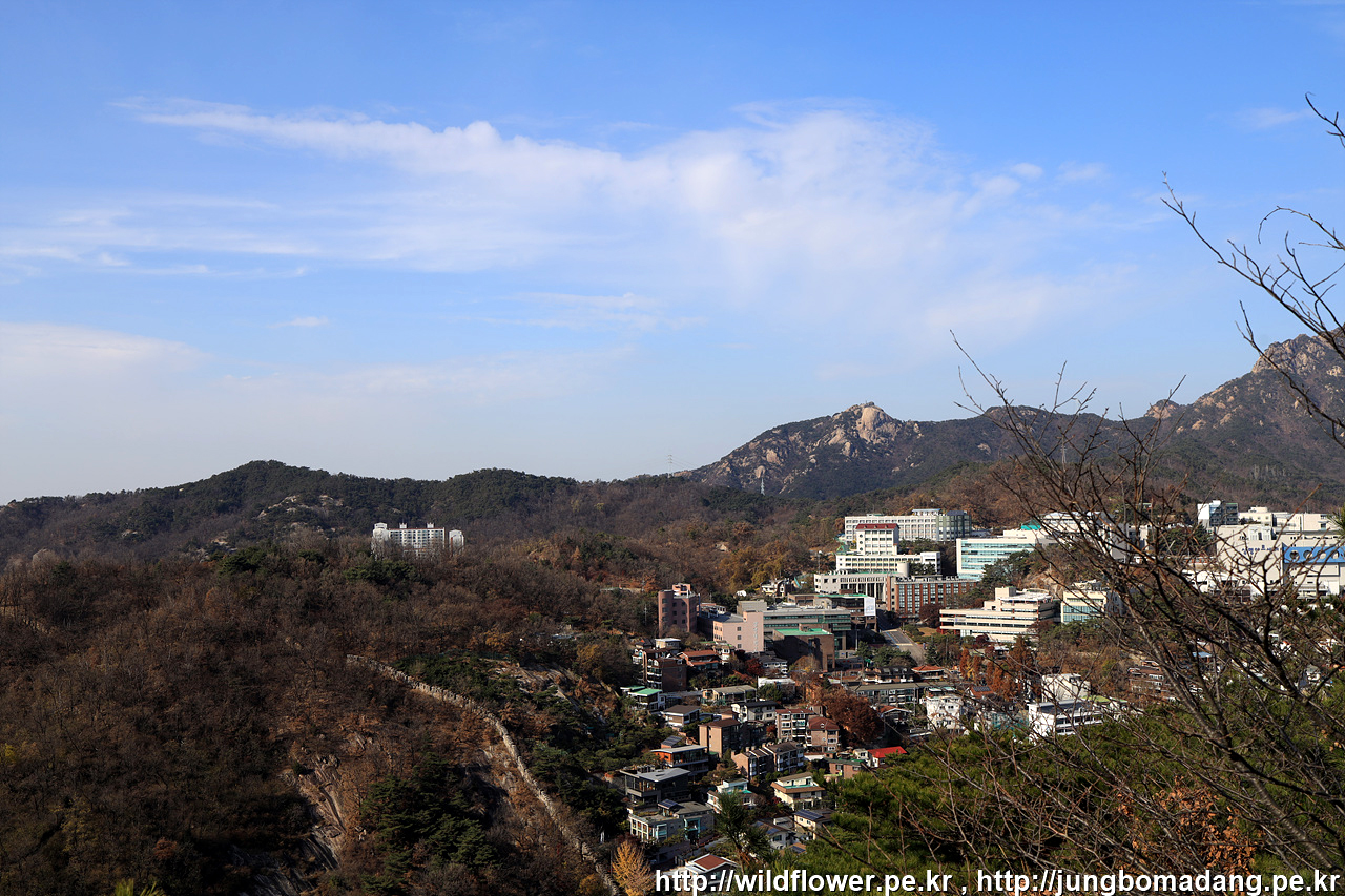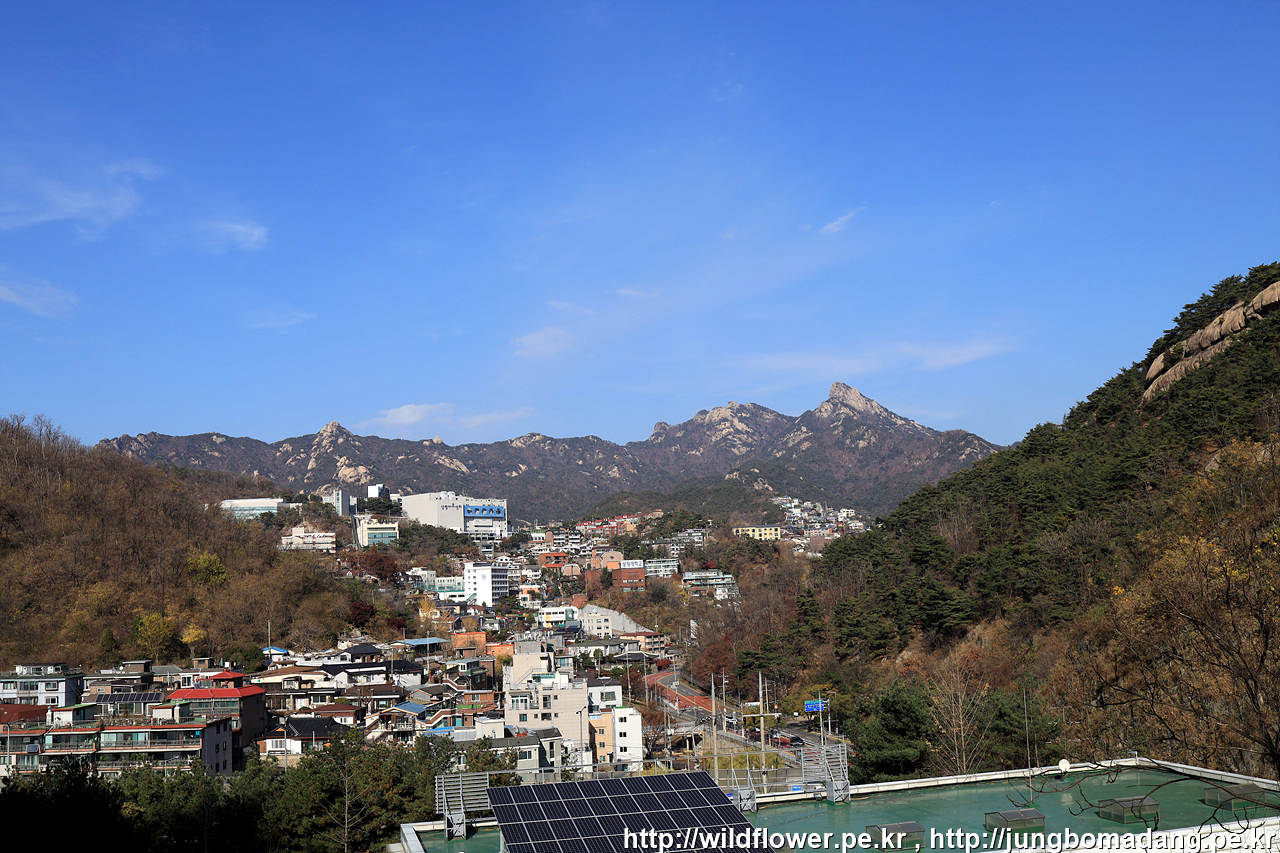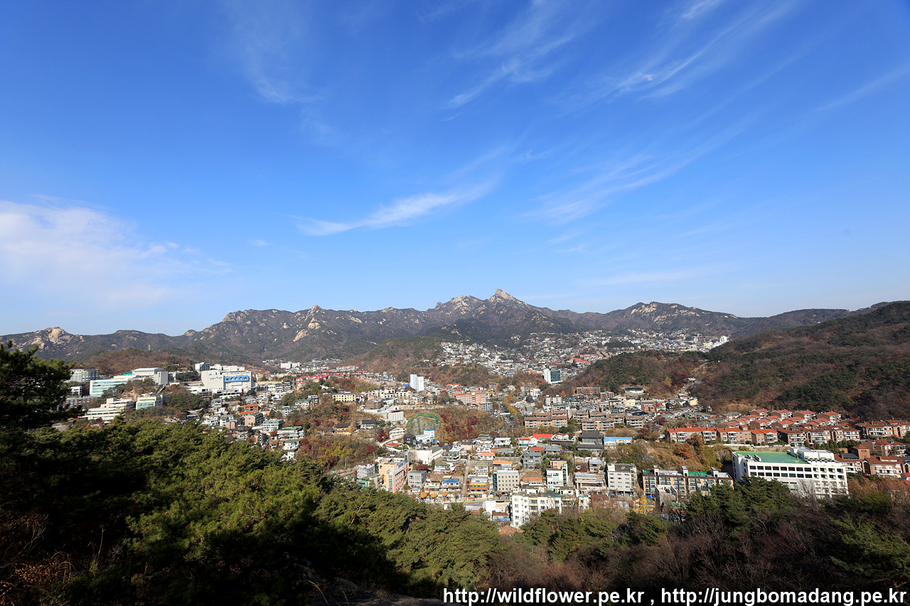 좌측으로 북악산이 보입니다. 아래쪽은 청운빌리지. 좌측편으로 보이진 않지만, 윤동주문학관 및 창의문이 있습니다.