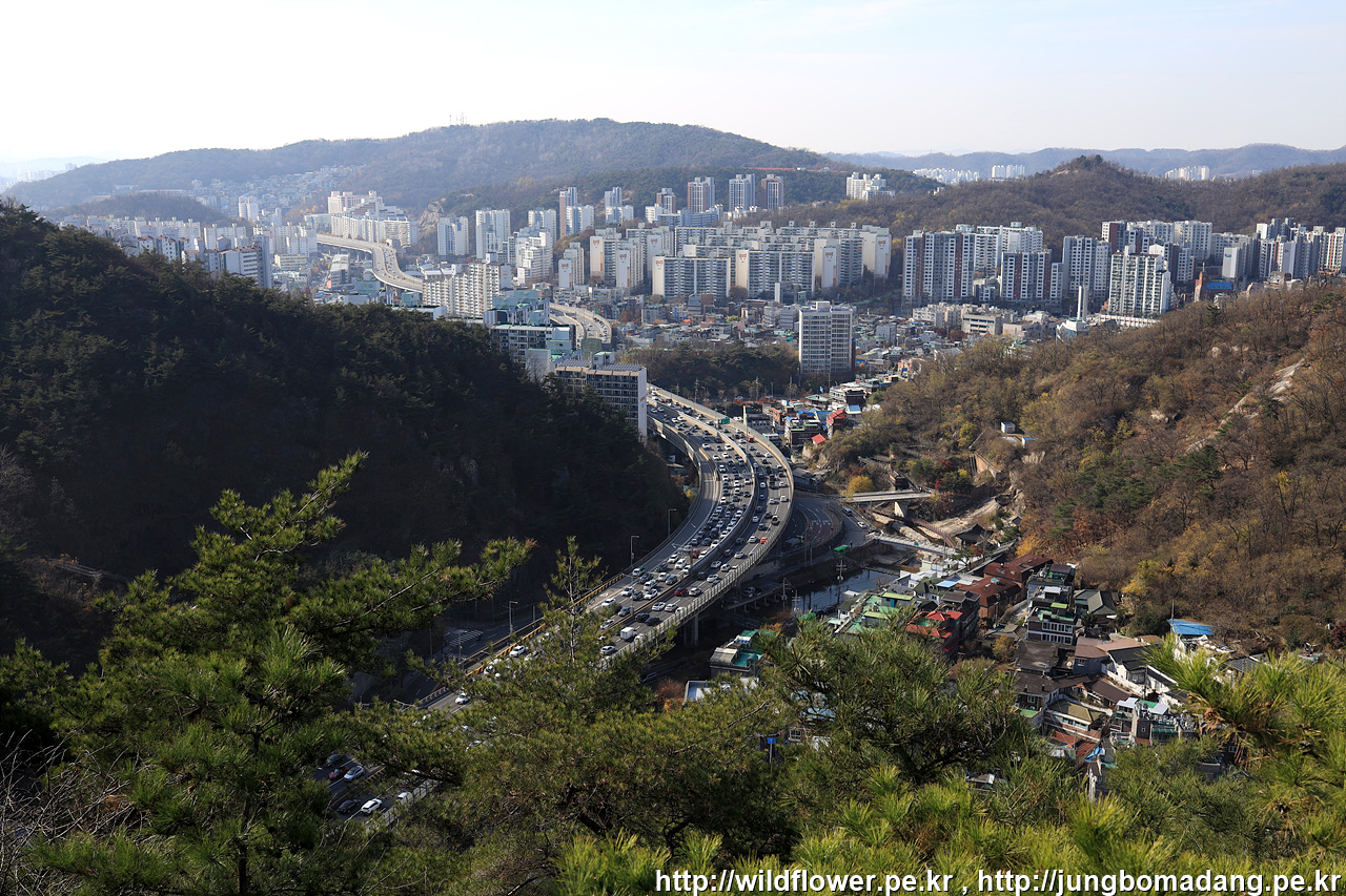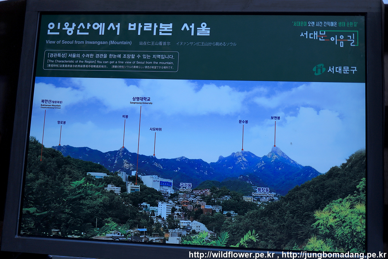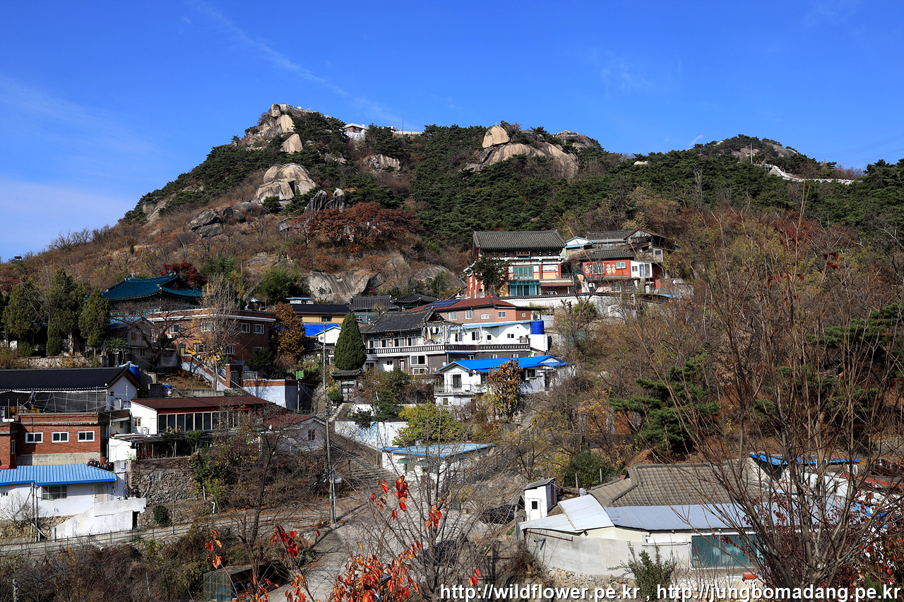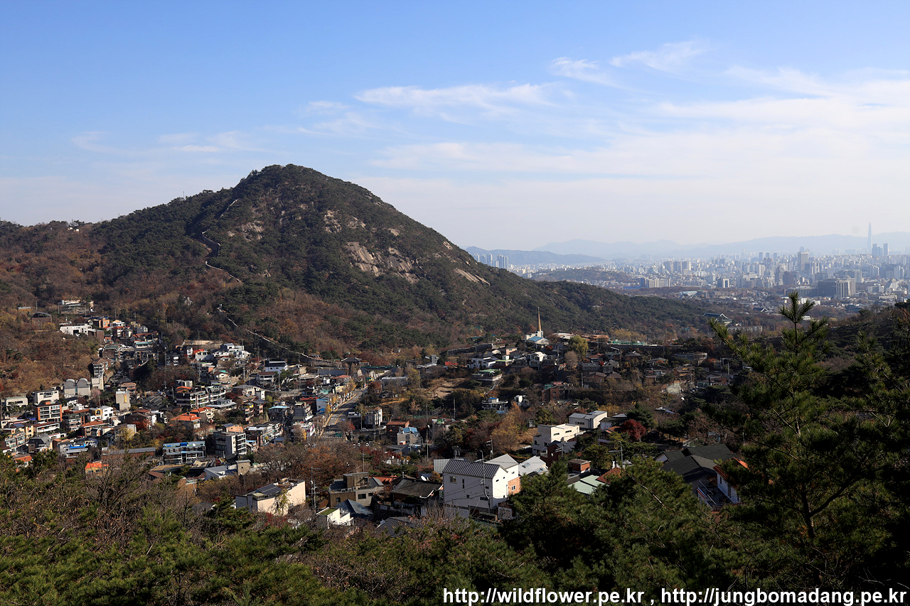좌측으로 북악산이 보입니다. 아래쪽은 청운빌리지. 좌측편으로 보이진 않지만, 윤동주문학관 및 창의문이 있습니다.