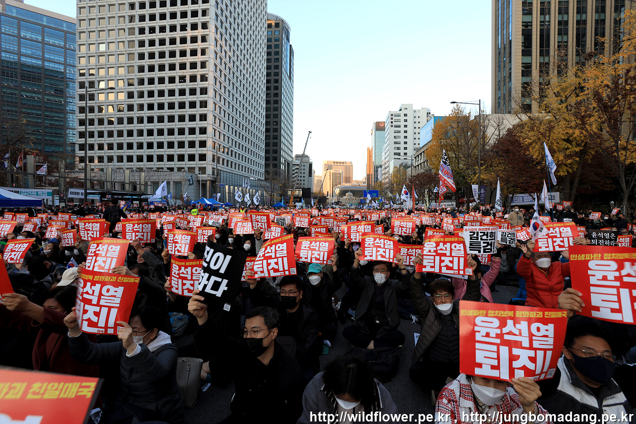 늘 그렇지만 질서 정연하게 자리 잡습니다. 오늘은 윤석열이 가끔 나타나는 용산 집무실까지 행진이라서 광화문 방면인 시청역에 무대가 오늘은 숭례문쪽에 무대로 우측편에 자리 잡습니다.