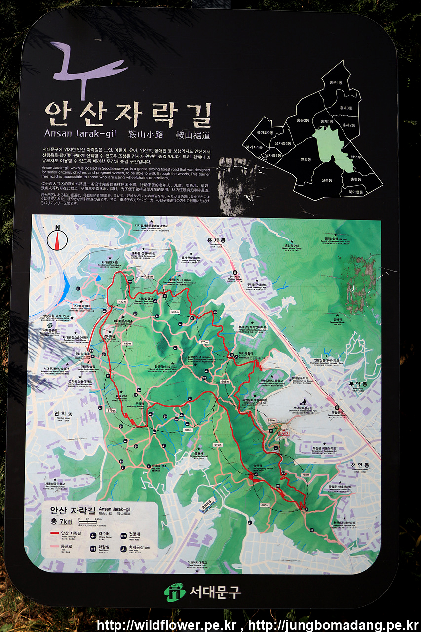 무악재 하늘다리로 가기 위해 안산자락길 따라 가고 있습니다.